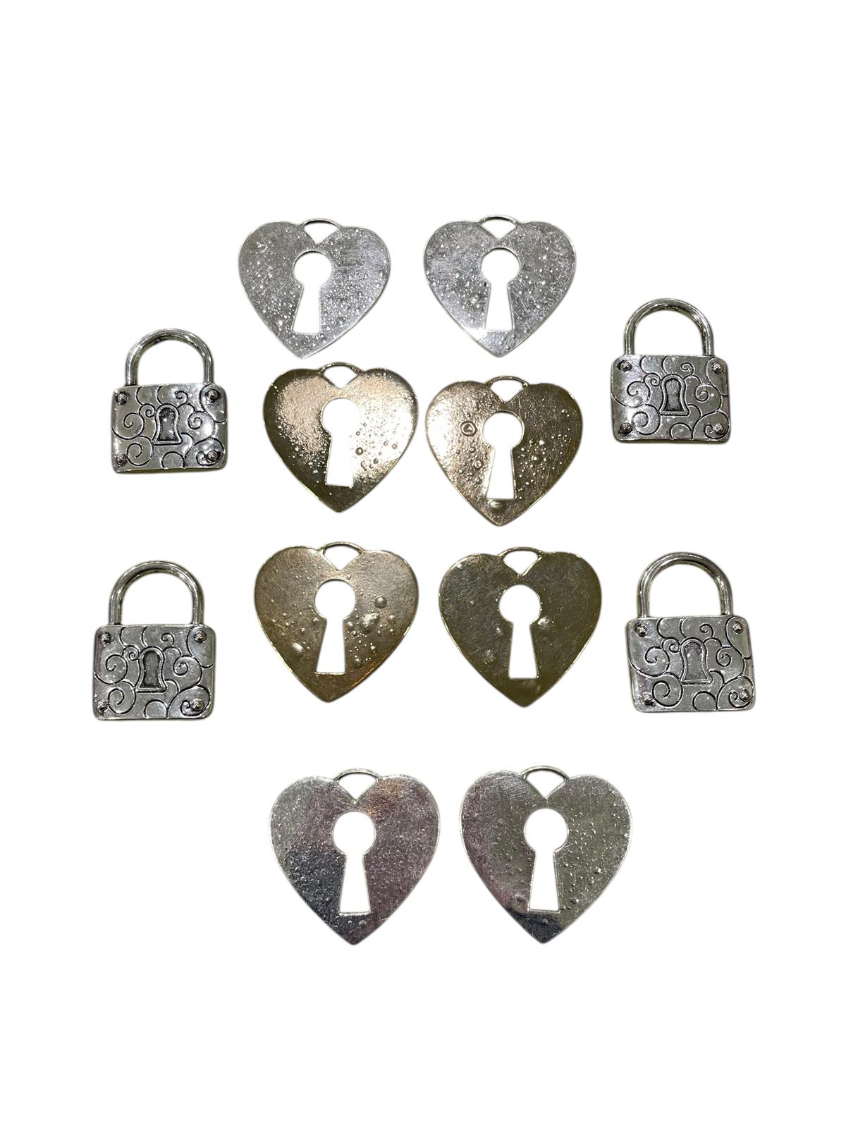 Stock 12 pz Ciondoli a Cuore con Lucchetto – Color Oro e Argento