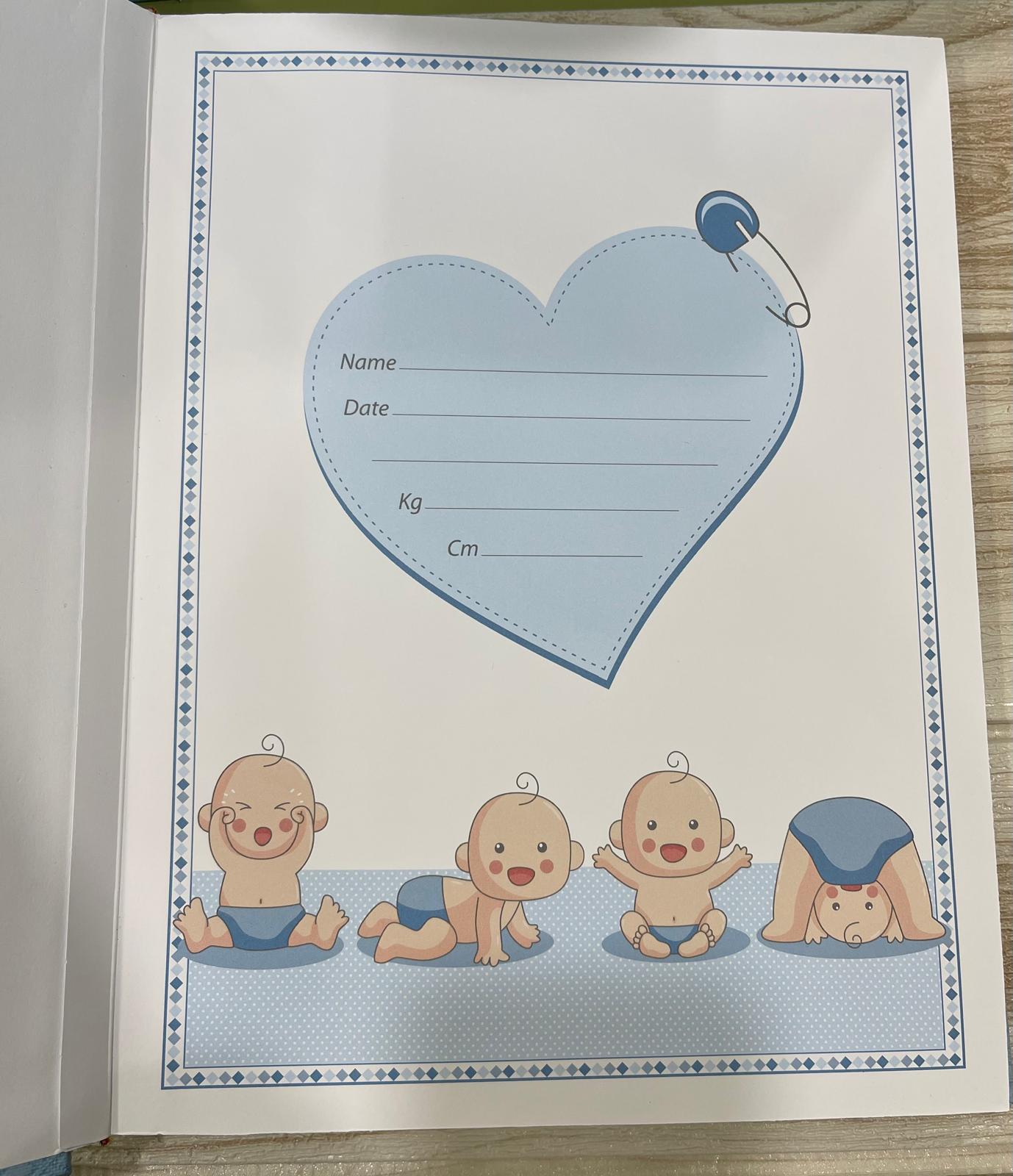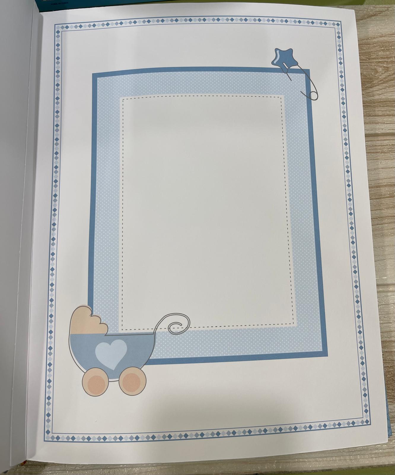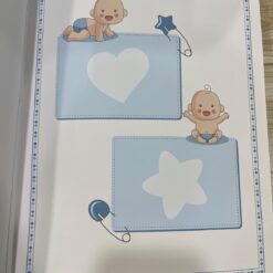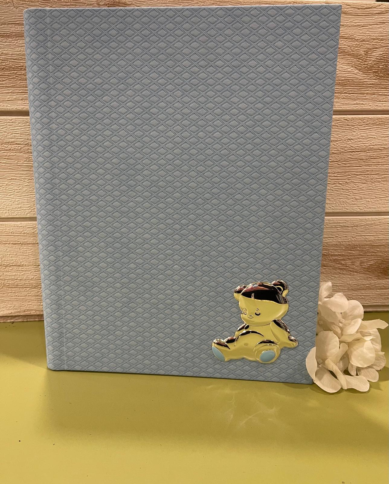 Nella parte inferiore è applicato un tenero orsetto decorativo con dettagli smaltati azzurri, che dona un tocco dolce e prezioso all’album, rendendolo perfetto per un bimbo.