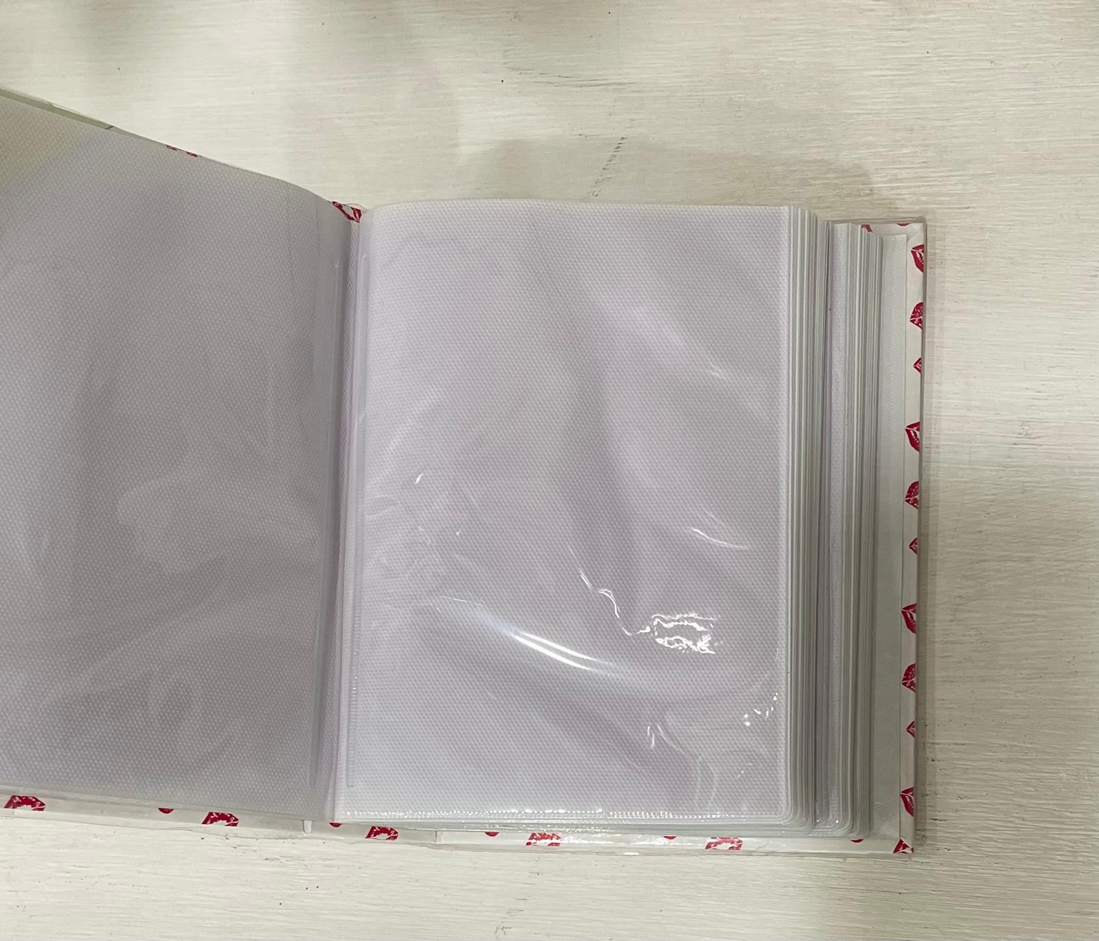 L’album ha una struttura compatta con pagine in plastica trasparente per proteggere le foto.