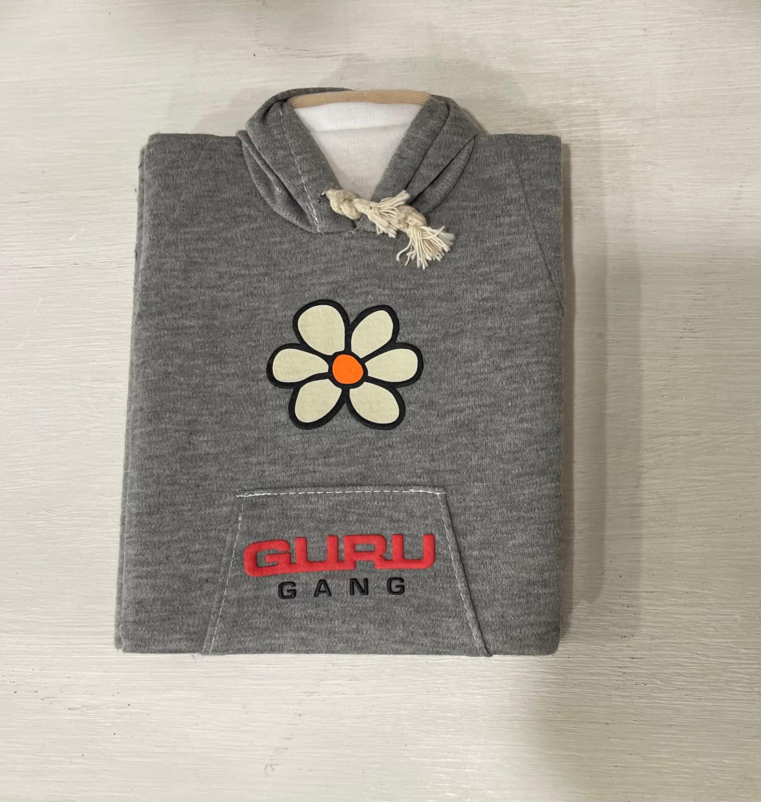 La copertina è realizzata in tessuto elasticizzato grigio che richiama l’iconico stile delle magliette firmate Guru, con al centro una margherita, e l’iconica scritta Guru Gang in basso.