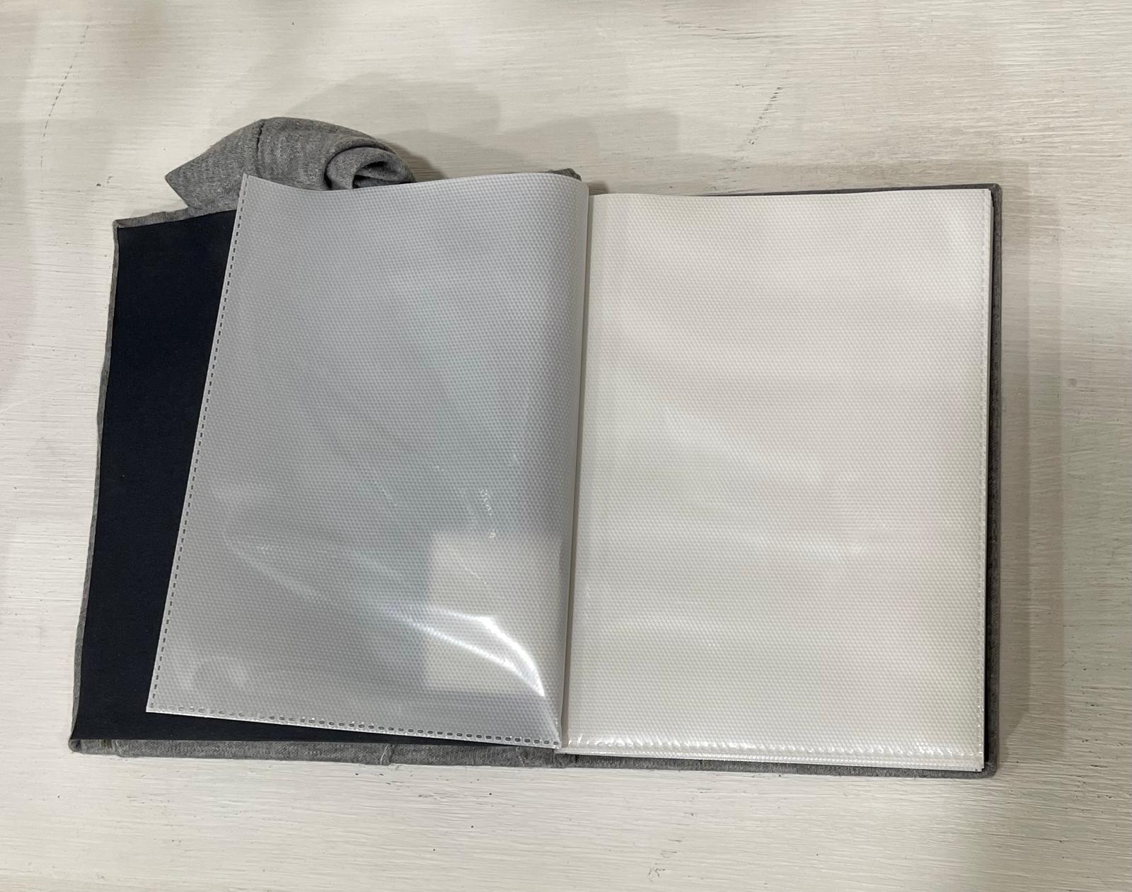 L’album ha una struttura compatta con pagine in plastica trasparente per proteggere le foto.