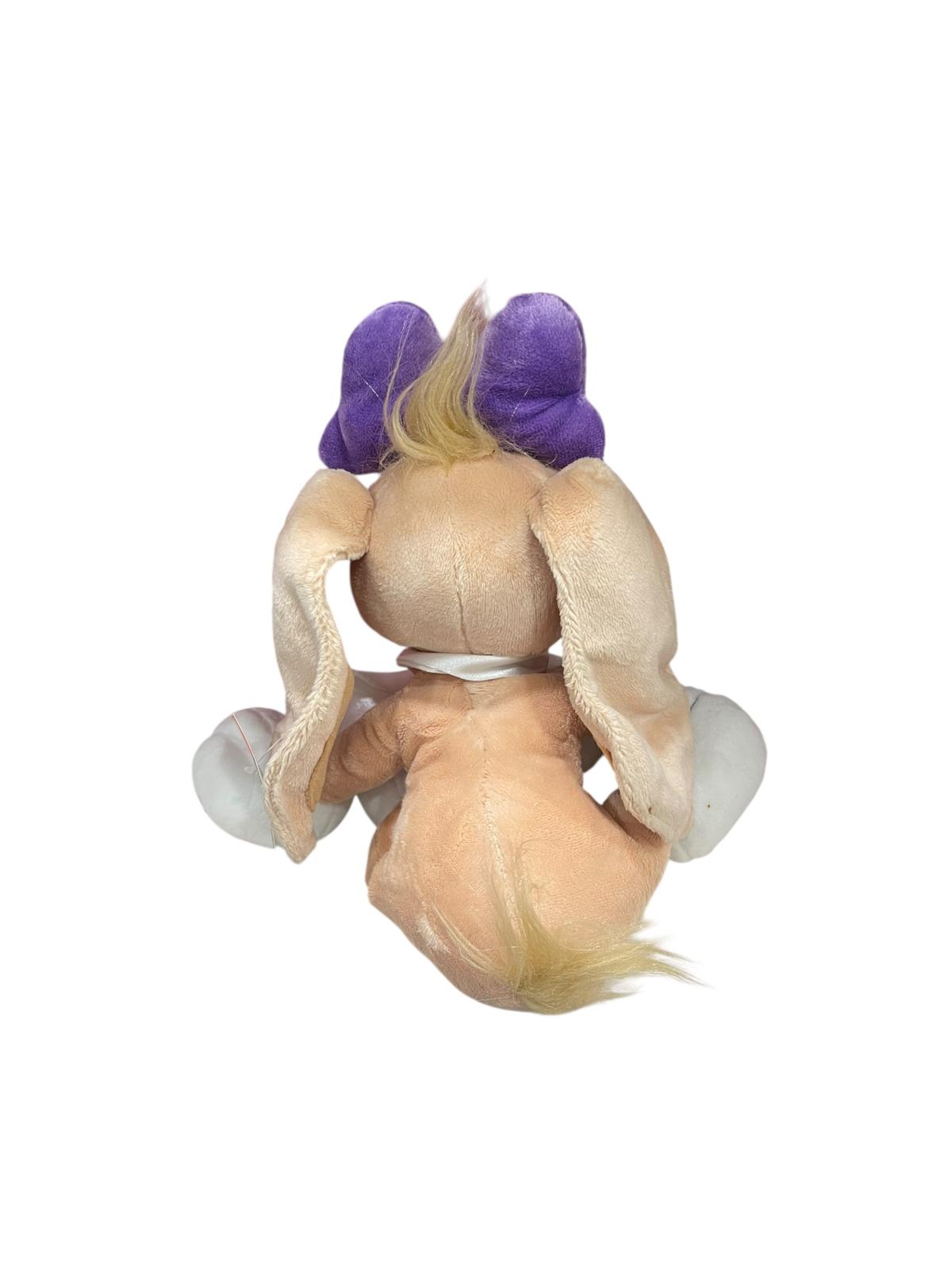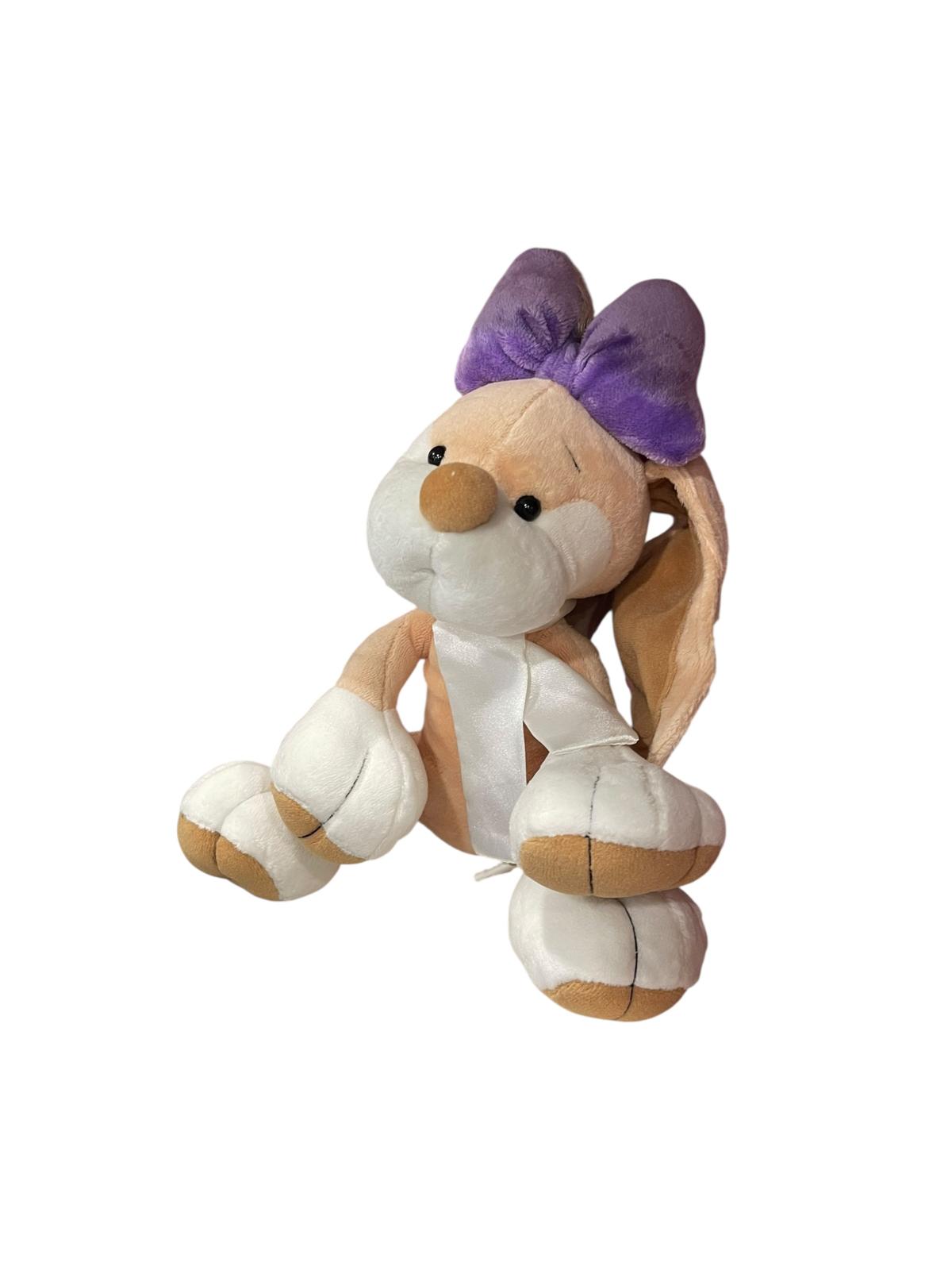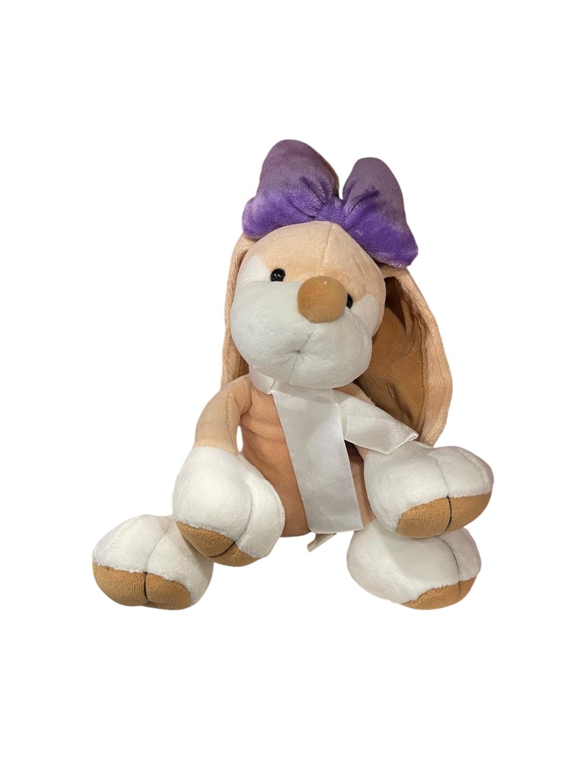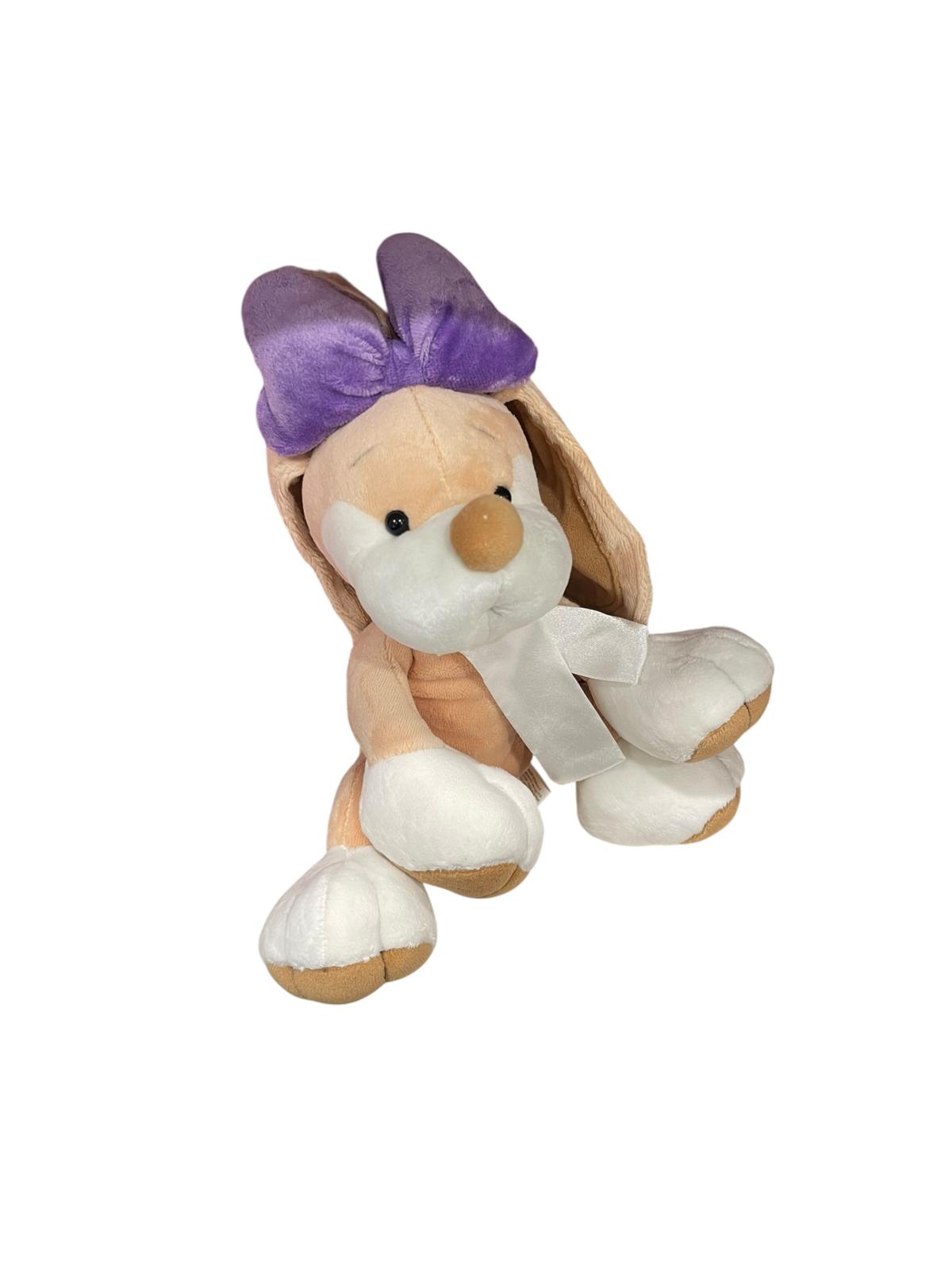 Morbido cagnolino in peluche che indossa un grazioso foulard bianco.