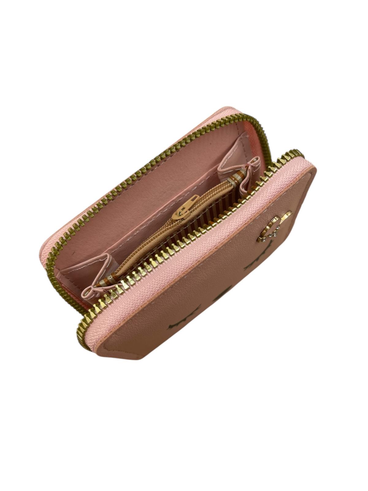 Il Portafoglio Zip Teddy Face è realizzato in un materiale morbido e curato nei dettagli, impreziosito dalla faccina di un orsetto stampata sul fronte e da un fiocchetto in metallo tono su tono con delicati strass luminosi.