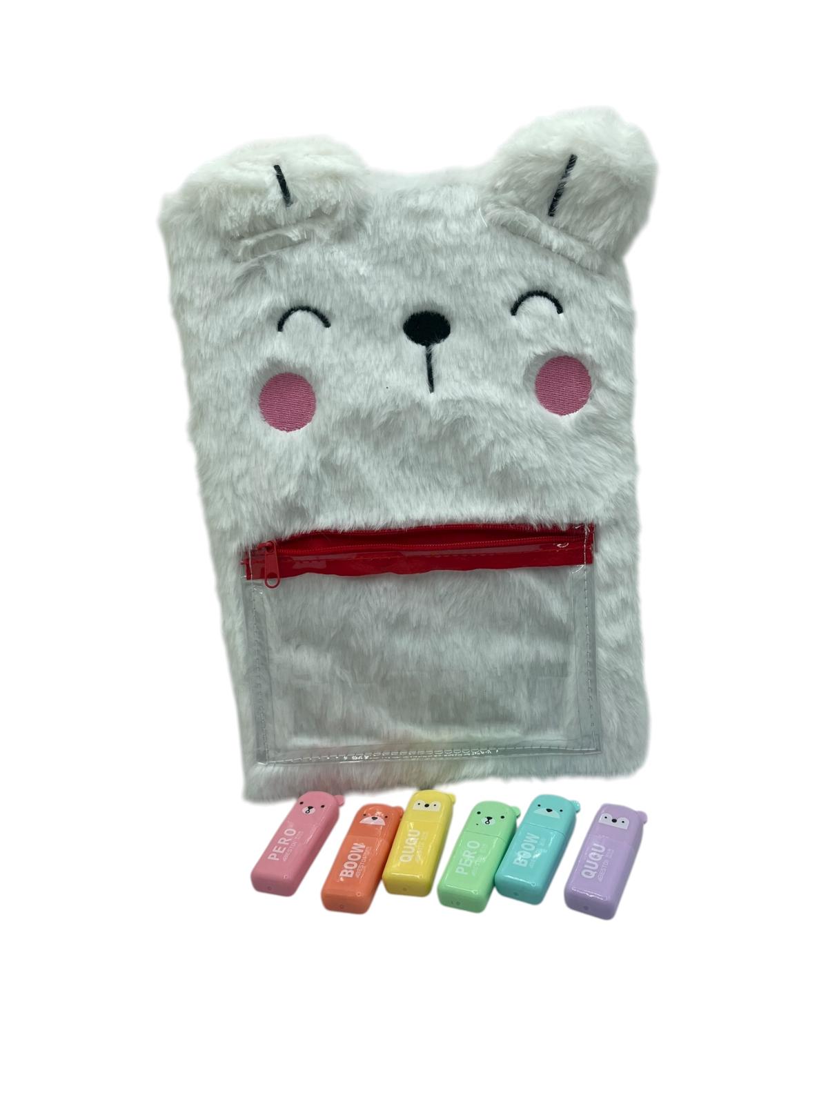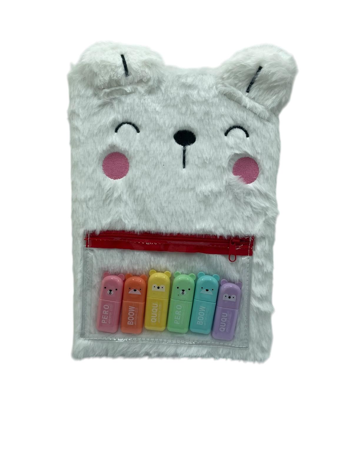 🧸 Quaderno Peluche con Faccina Orsetto + 6 Mini Evidenziatori