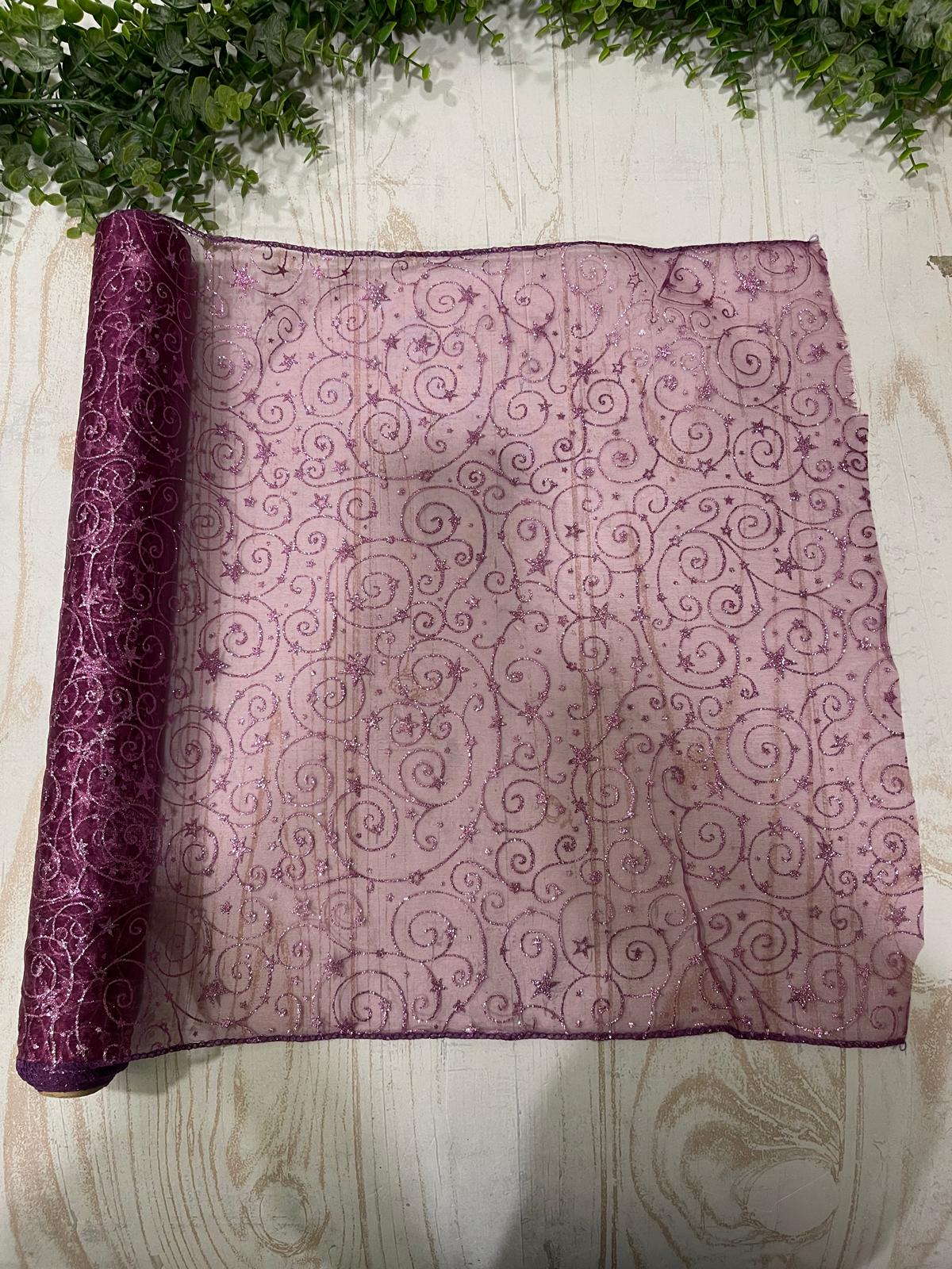 Copri tavolo quadrato in organza, viola con l’applicazione di glitter.