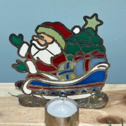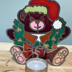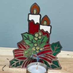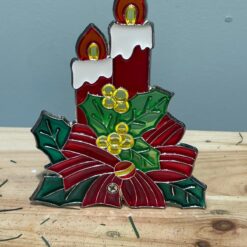 Decorazione natalizia realizzata in stile vetrata colorata, ideale per creare un’atmosfera calda e accogliente durante le feste.