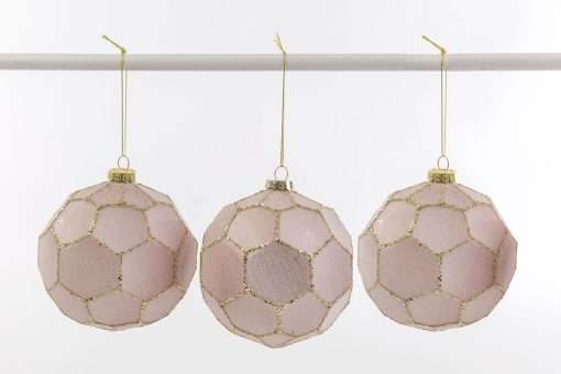 Set da 3 palline di Natale in vetro bianco glitterato con linee in oro glitter