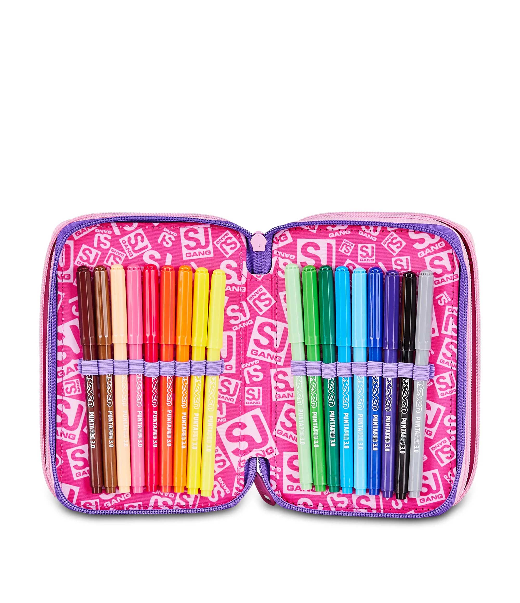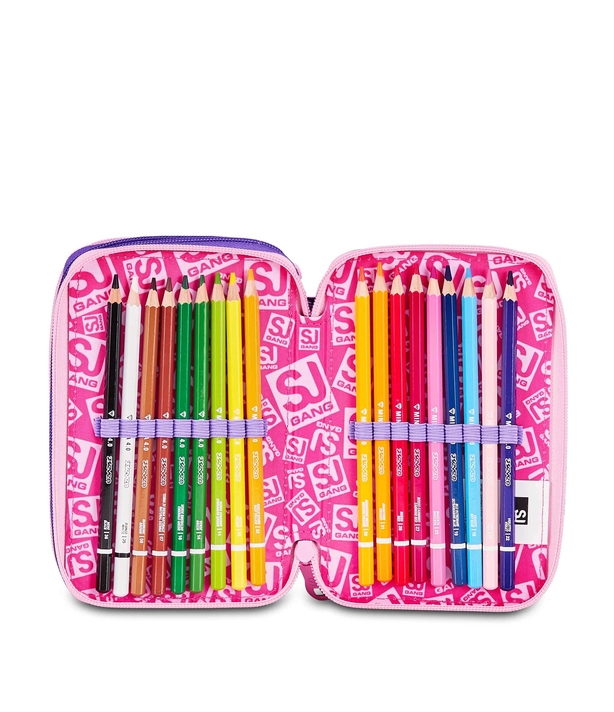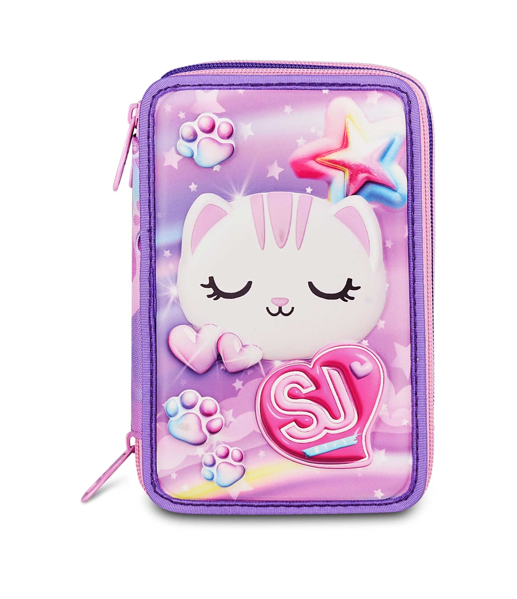 Ciao! Sono il coloratissimo Astuccio 3 zip SJ Gang con scocca frontale semi rigida e GATTINO IN RILIEVO. Dotato di 3 scomparti completi di tutto il materiale necessario per fare al meglio i tuoi lavori di scuola, puoi abbinarmi a uno zaino o a un trolley SJ Gang.
