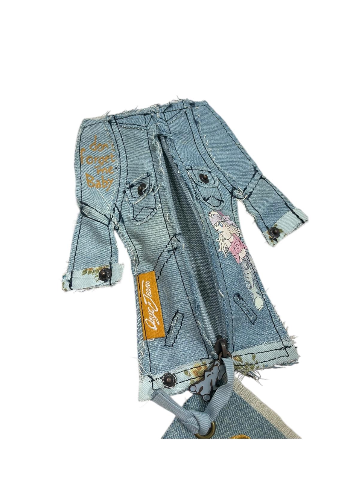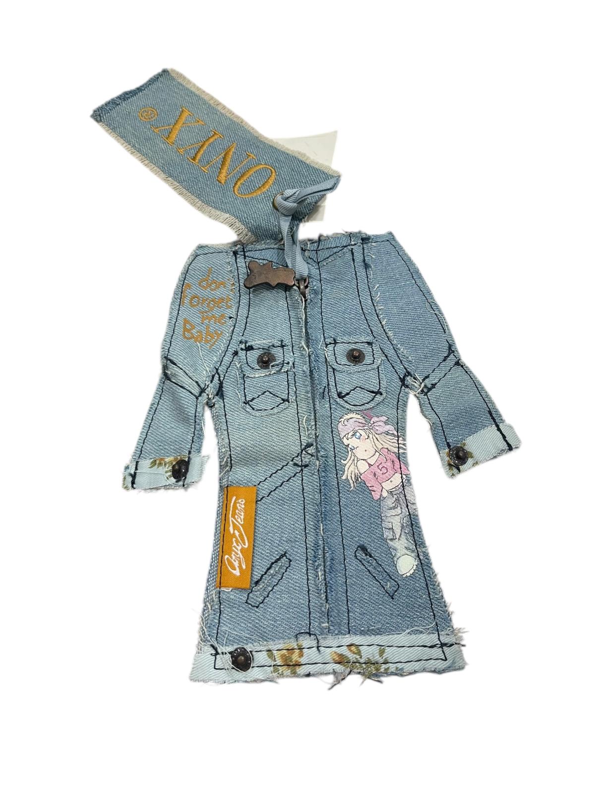 Un originale astuccio bustina a forma di abito in jeans targato Onyx.