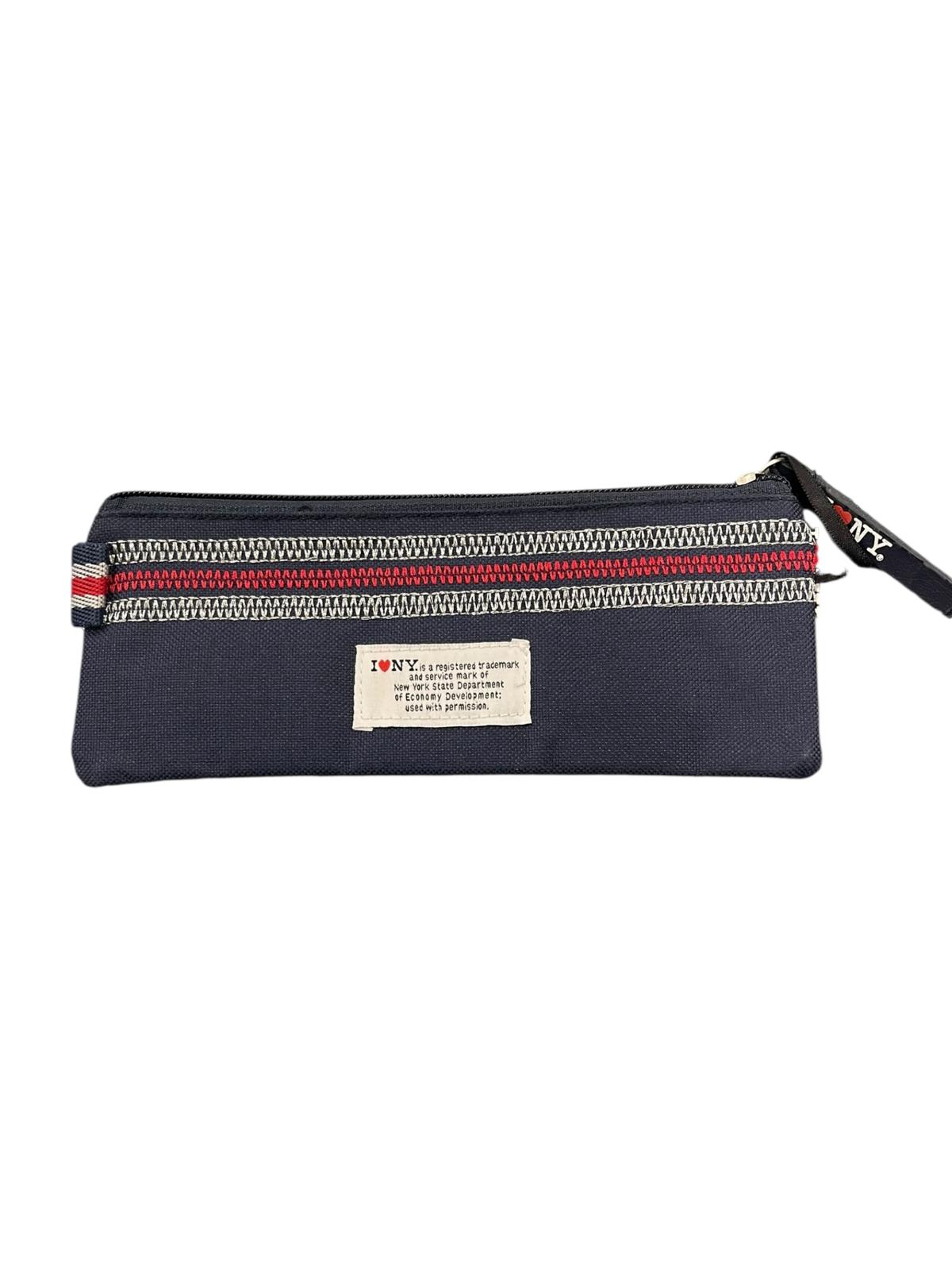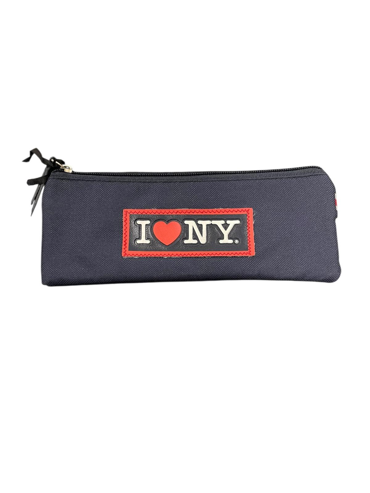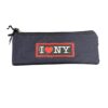 Astuccio Bustina piatta I Love New York in tessuto blu navy stile urban con chiusura zip e tiralampo personalizzato i love new york. Logo applicato sul fronte dell’astuccio.