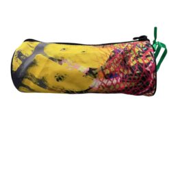 Tombolino diadora con chiusura zip, disponibile in due varianti diverse: una dal design ispirato alla natura, con una vivace stampa floreale ad effetto artistico e l’altra con una grafica colorata e moderna ispirata all’arte metropolitana.