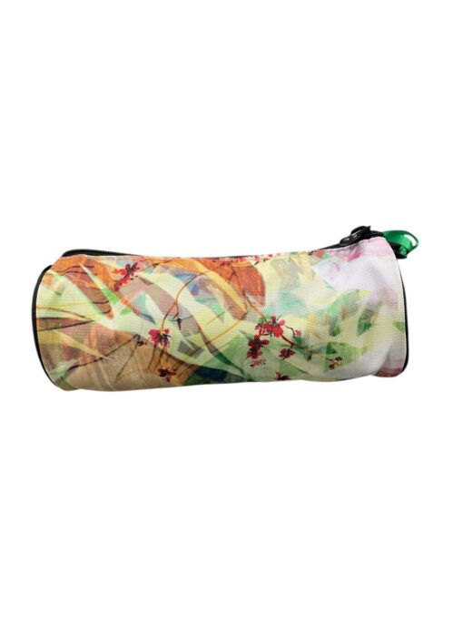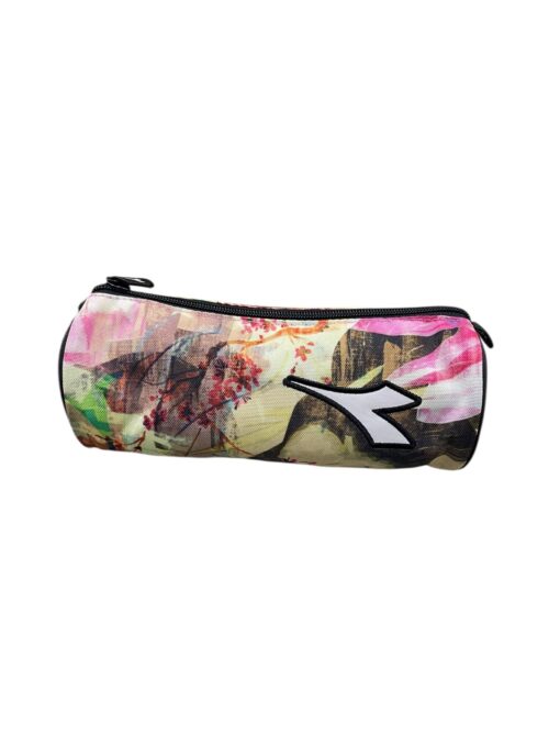 Tombolino diadora con chiusura zip, disponibile in due varianti diverse: una dal design ispirato alla natura, con una vivace stampa floreale ad effetto artistico e l’altra con una grafica colorata e moderna ispirata all’arte metropolitana.