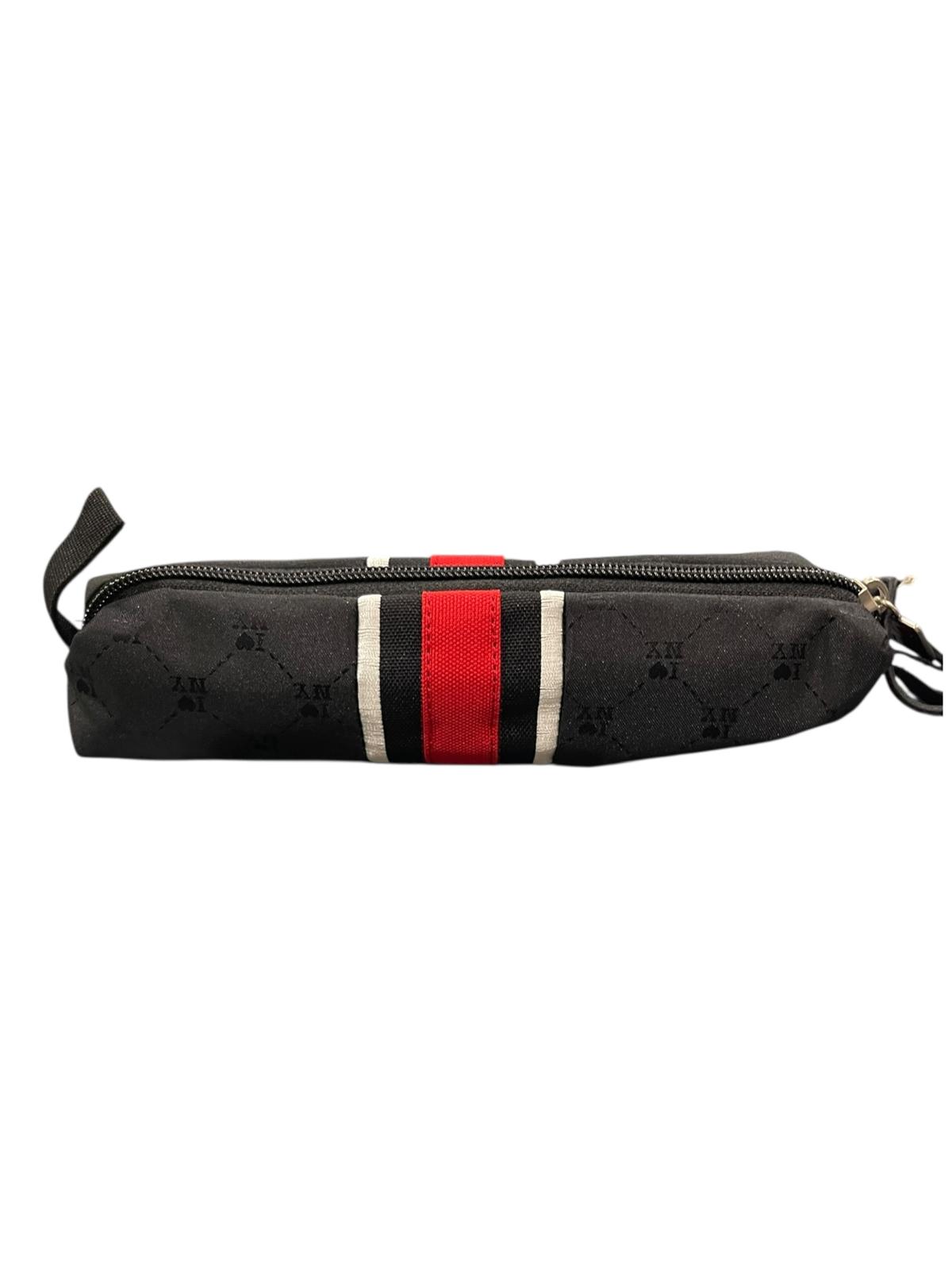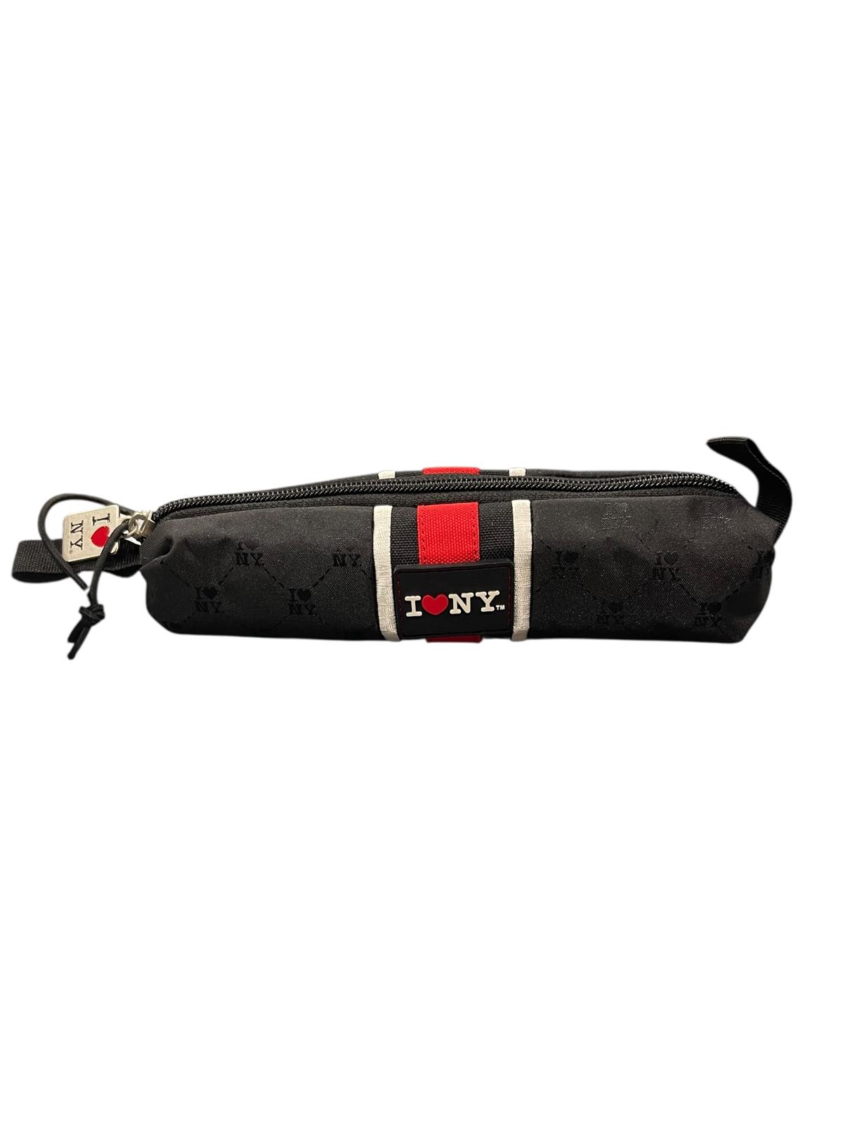 Astuccio Tombolino I Love New York nero unico vano con chiusura zip e tirante metallico quadrato con logo.