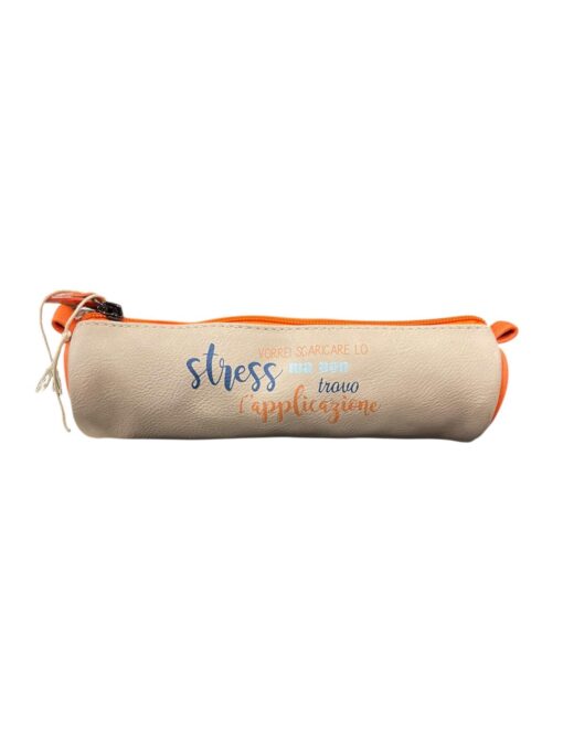 Astuccio Tombolino MiniPa’ in similpelle con chiusura zip, colorati, originali e con frasi ironiche stampate sul fronte, perfetto per scuola e ufficio grazie alla sua forma compatta e pratica. Disponibile in due varianti diverse.