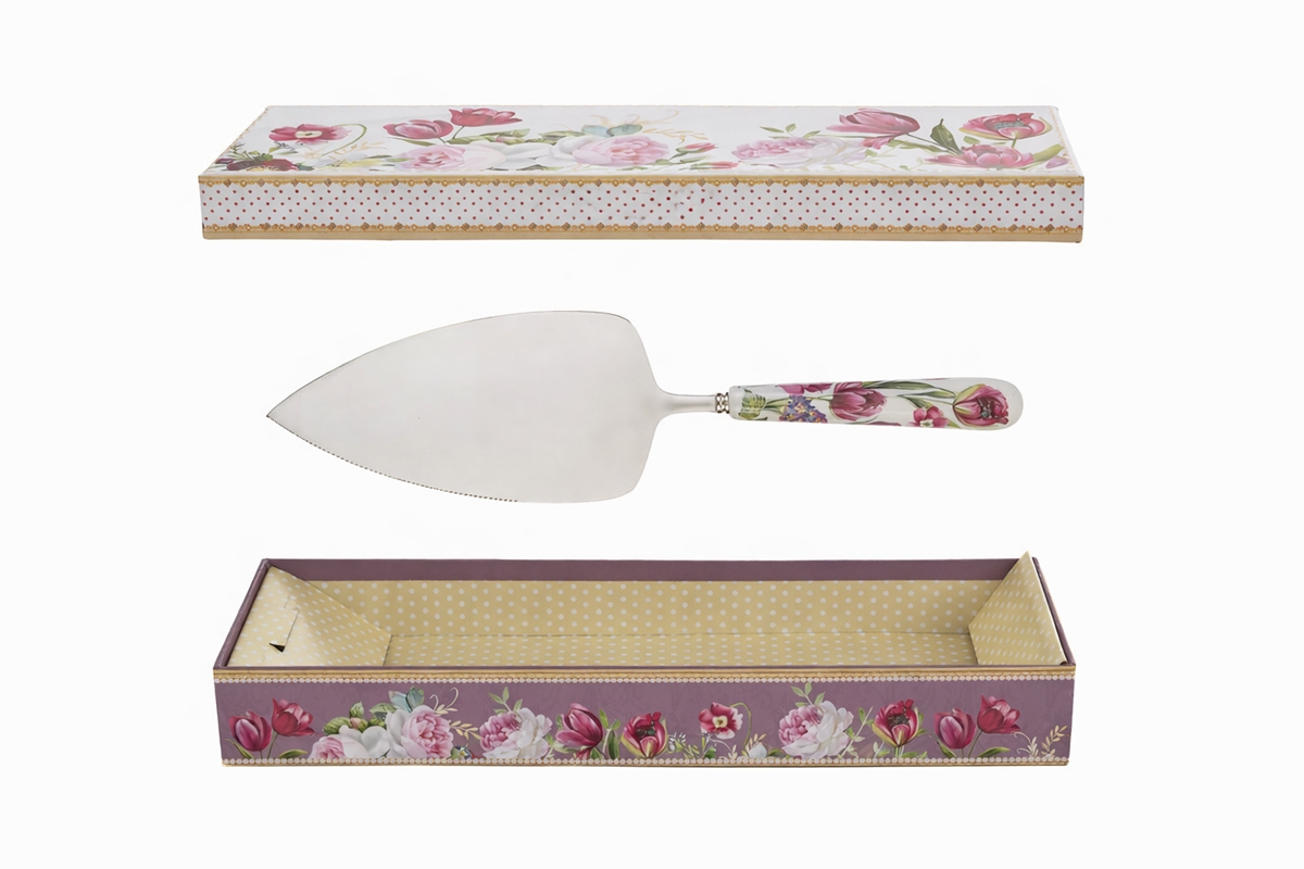 Elegante pala torta in porcellana, impreziosita da un delicato decoro floreale sul manico, espressione della romantica linea Bouquet di Charme di Le Stelle. Un oggetto raffinato e armonioso, pensato per accompagnare con stile i momenti più dolci delle occasioni speciali.