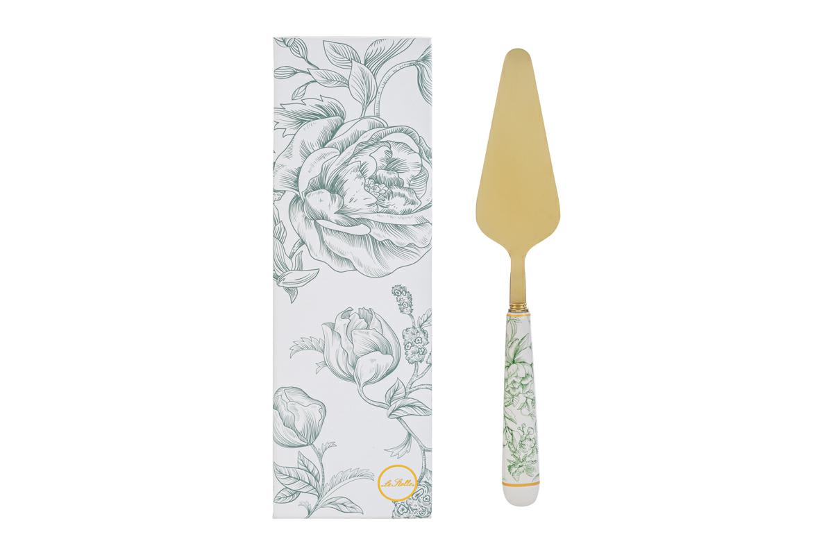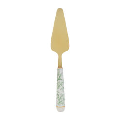 Pensata per accompagnare con stile i momenti più dolci delle occasioni speciali, questa paletta torta in metallo si distingue per il raffinato decoro floreale verde, capace di donare all’oggetto un’eleganza sobria e naturale. Le tonalità verdi, armoniose e delicate, esaltano le linee sottili del design, trasformando un semplice accessorio da servizio in un dettaglio ricercato e distintivo.