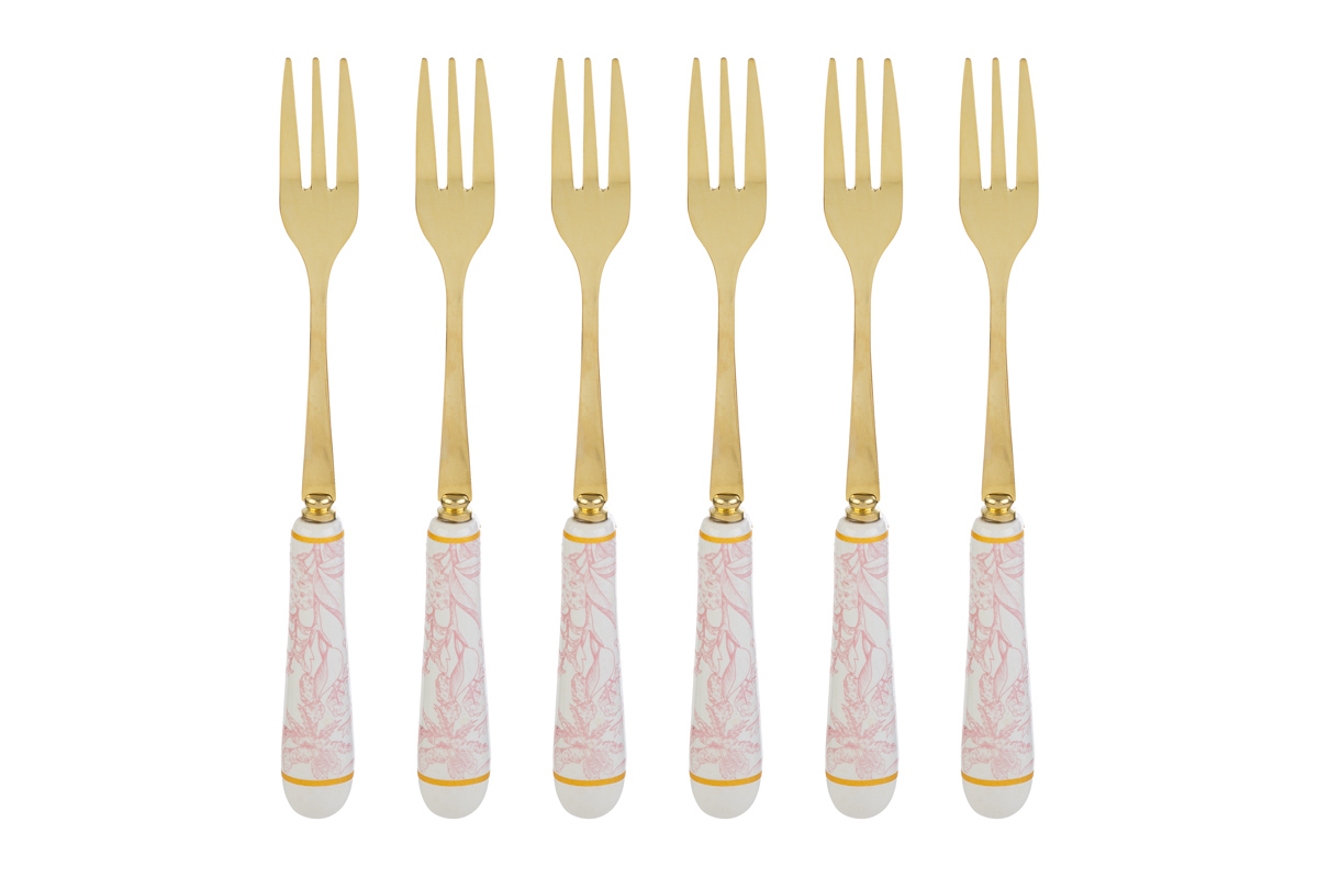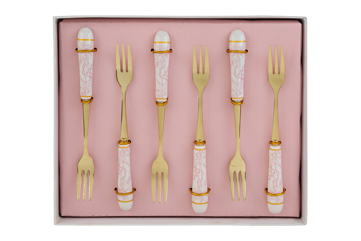 Delicato ed elegante, questo set composto da sei forchettine in metallo si distingue per i raffinati manici decorati in tonalità rosa, capaci di donare alla tavola un tocco armonioso e ricercato. Un insieme pensato per impreziosire con discrezione la mise en place, valorizzando ogni dettaglio con gusto contemporaneo.