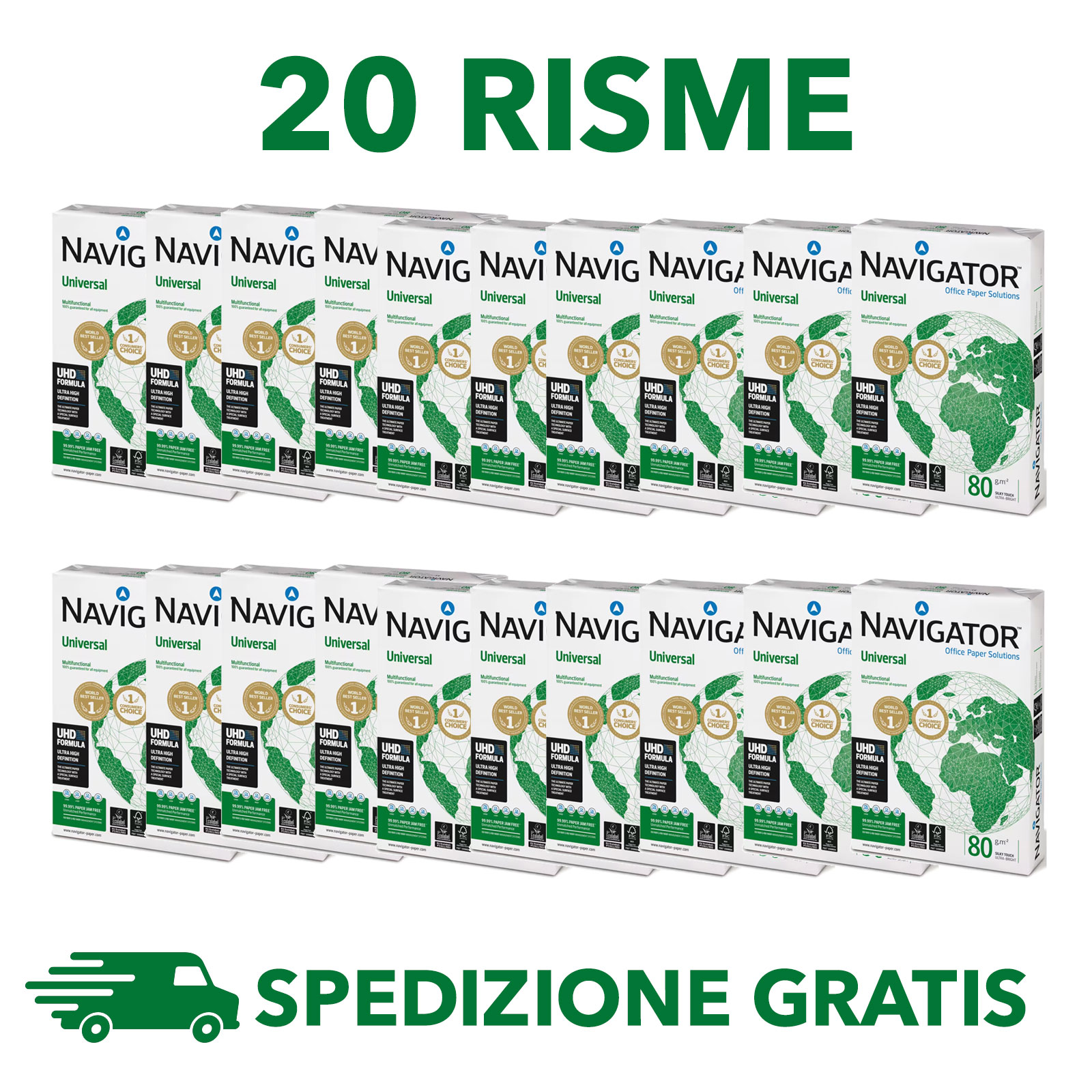 20 Risme da 500 Fogli di carta per fotocopie Navigator Premium UHD Formula, la scelta ideale per ottenere stampe nitide, brillanti e professionali.