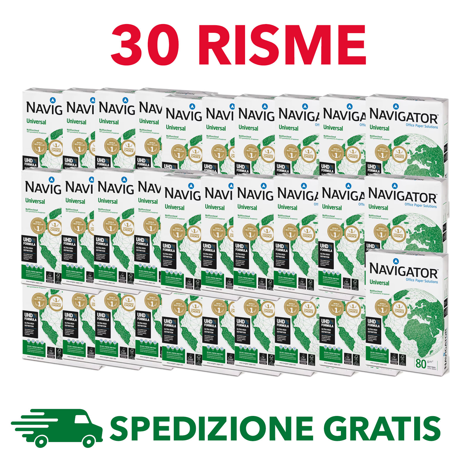 30 Risme da 500 Fogli di carta per fotocopie Navigator Premium UHD Formula, la scelta ideale per ottenere stampe nitide, brillanti e professionali.