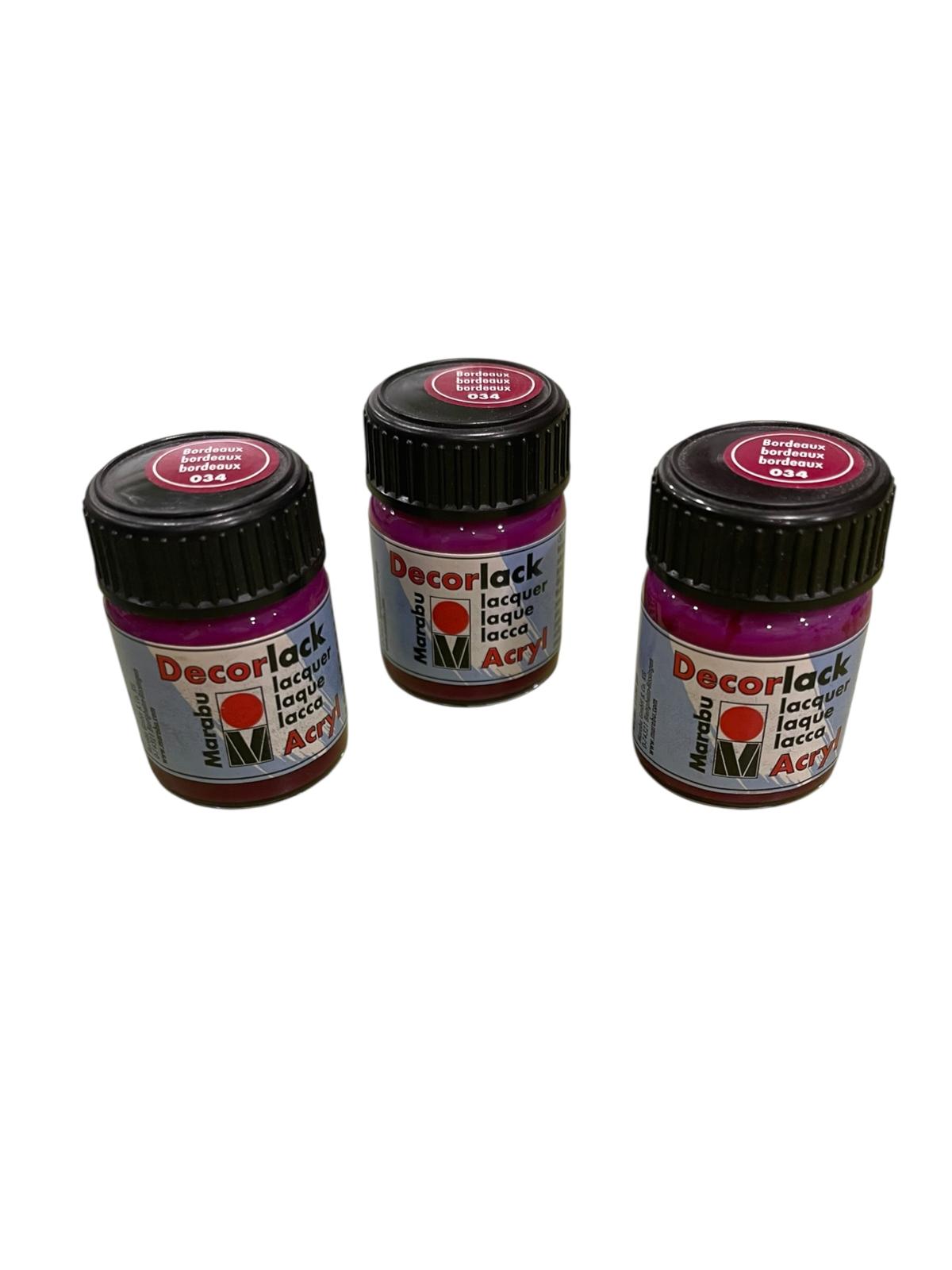 Stock 3 pz Marabu DecorLack Lacca Lucida Bordeaux 15ml