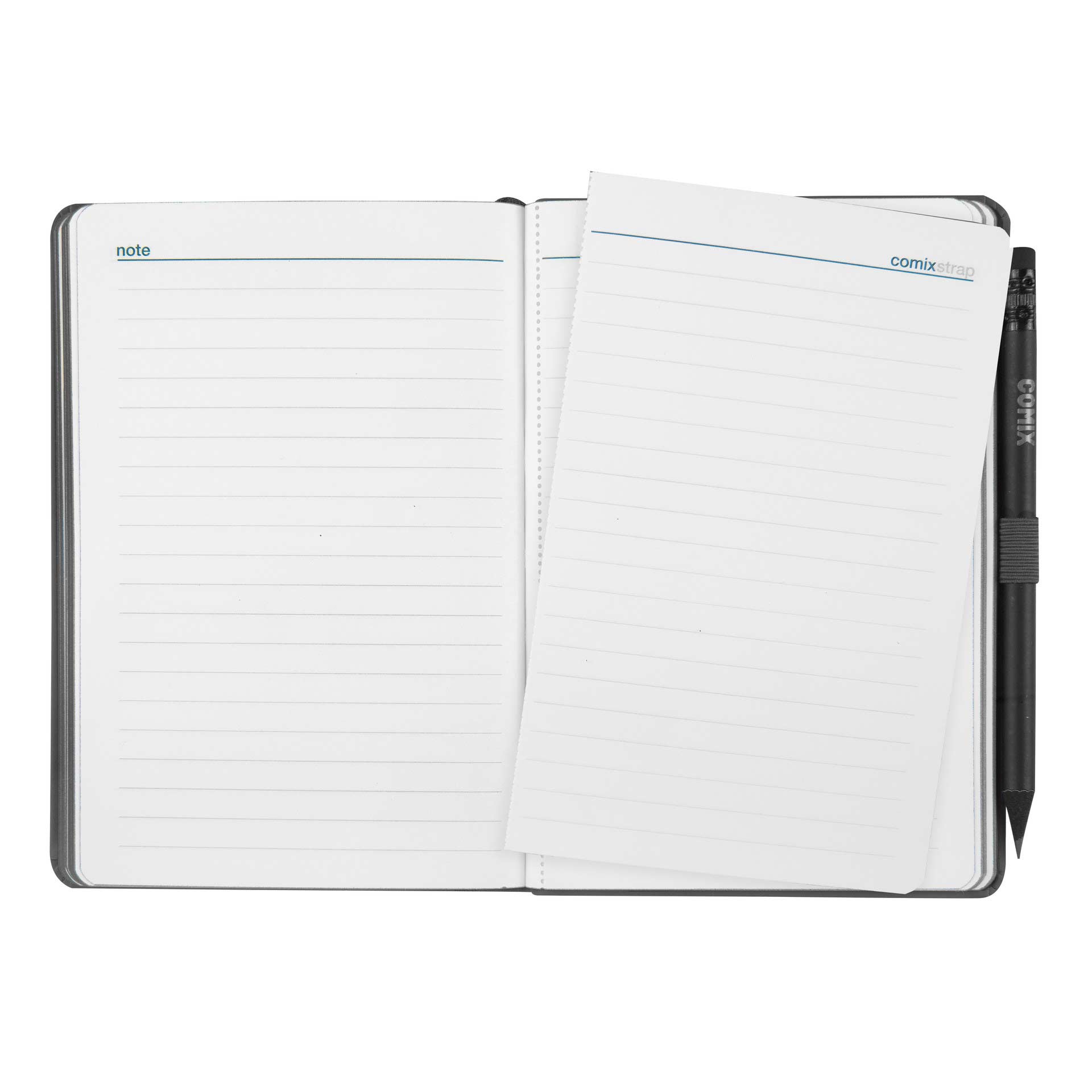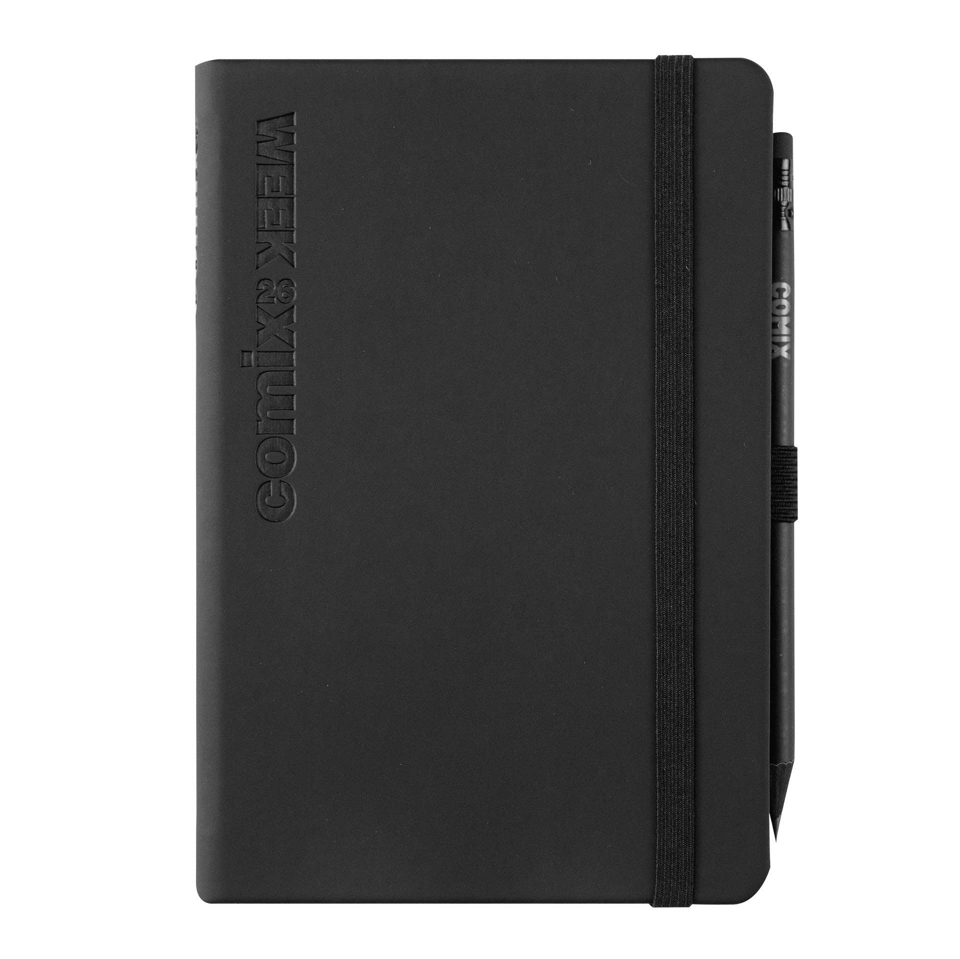 Chiusura con elastico, elastico porta matita con matita Comix inclusa e doppio segnalibro.