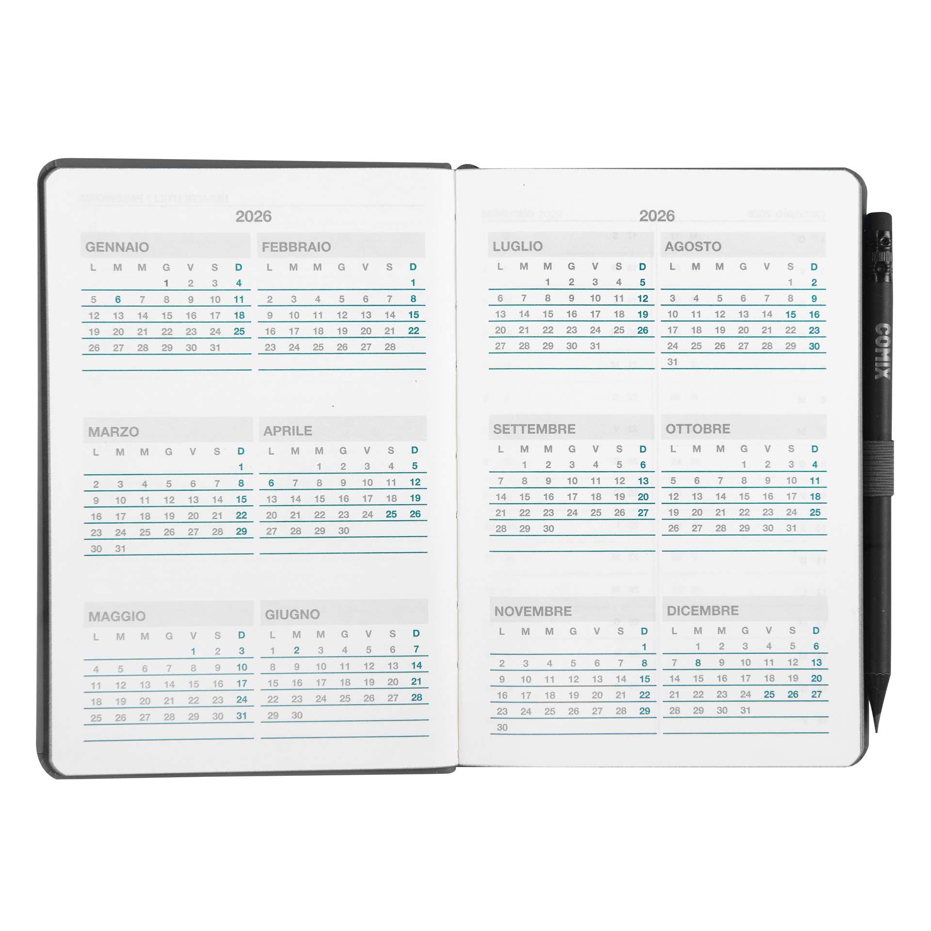 Agenda 12 Mesi 2026 Medium Settimanale Comix Black