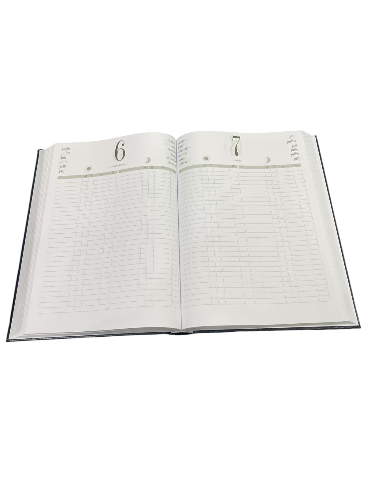Un’agenda spaziosa e completa, perfetta per chi desidera pianificare in modo dettagliato ogni giornata con tanto spazio per scrivere e organizzarsi.