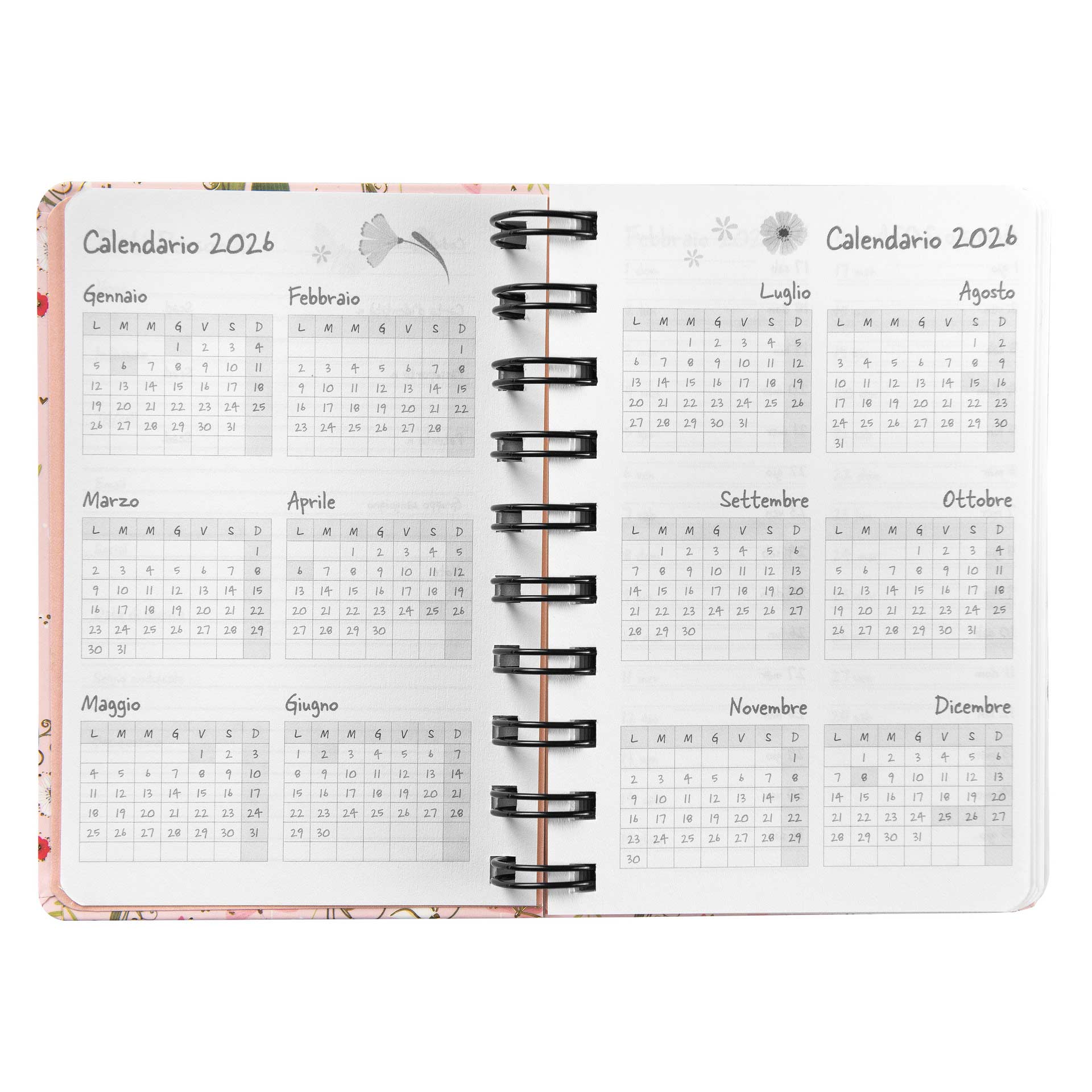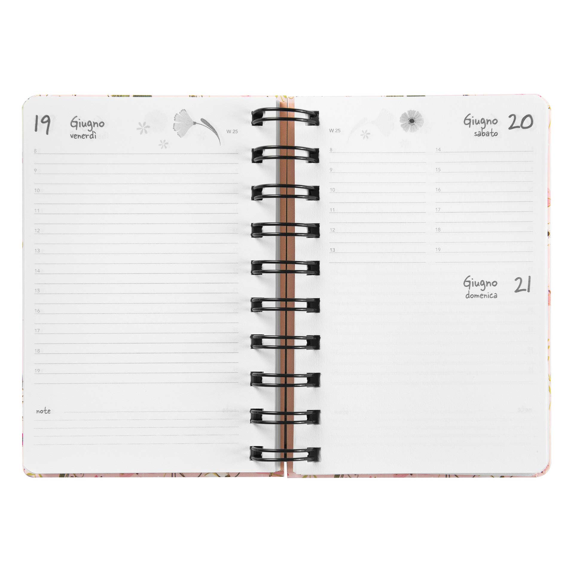 La robusta spirale nera e gli angoli tondi garantiscono resistenza e comfort d’uso, mentre la grafica aggiunge un tocco distintivo e prezioso.