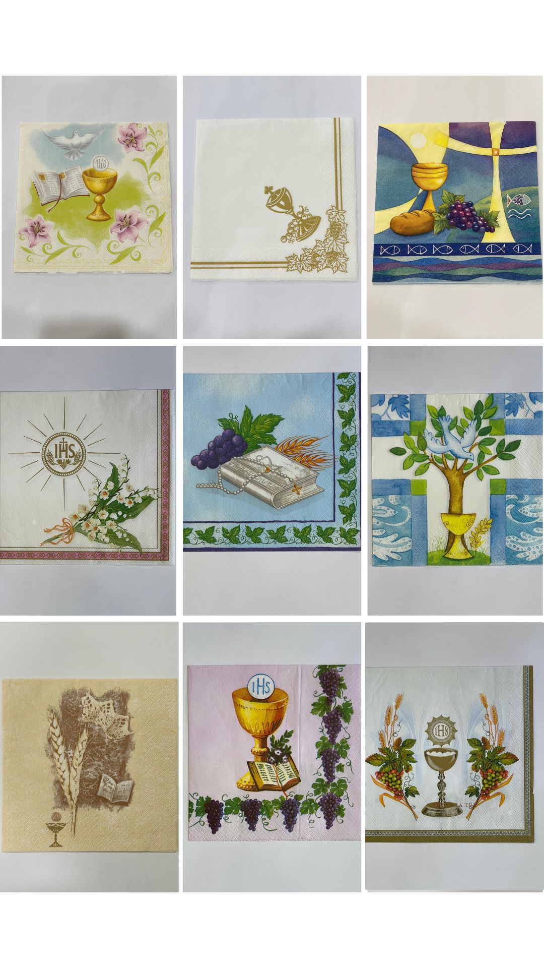 Eleganti tovaglioli in carta ideali per tecniche di decoupage e decorazione creativa a tema Prima Comunione.