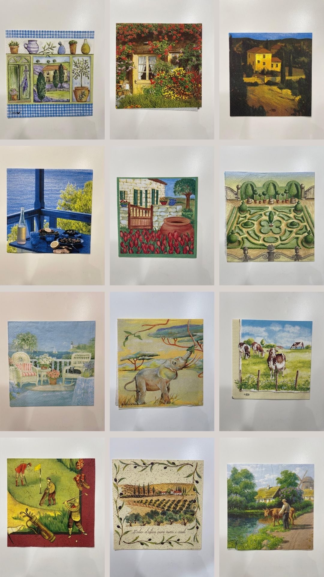 Tovaglioli decorativi ideali per il decoupage, impreziositi da immagini di paesaggi suggestivi e luoghi iconici: borghi antichi, campagne fiorite, città romantiche, scorci naturali e panorami senza tempo.