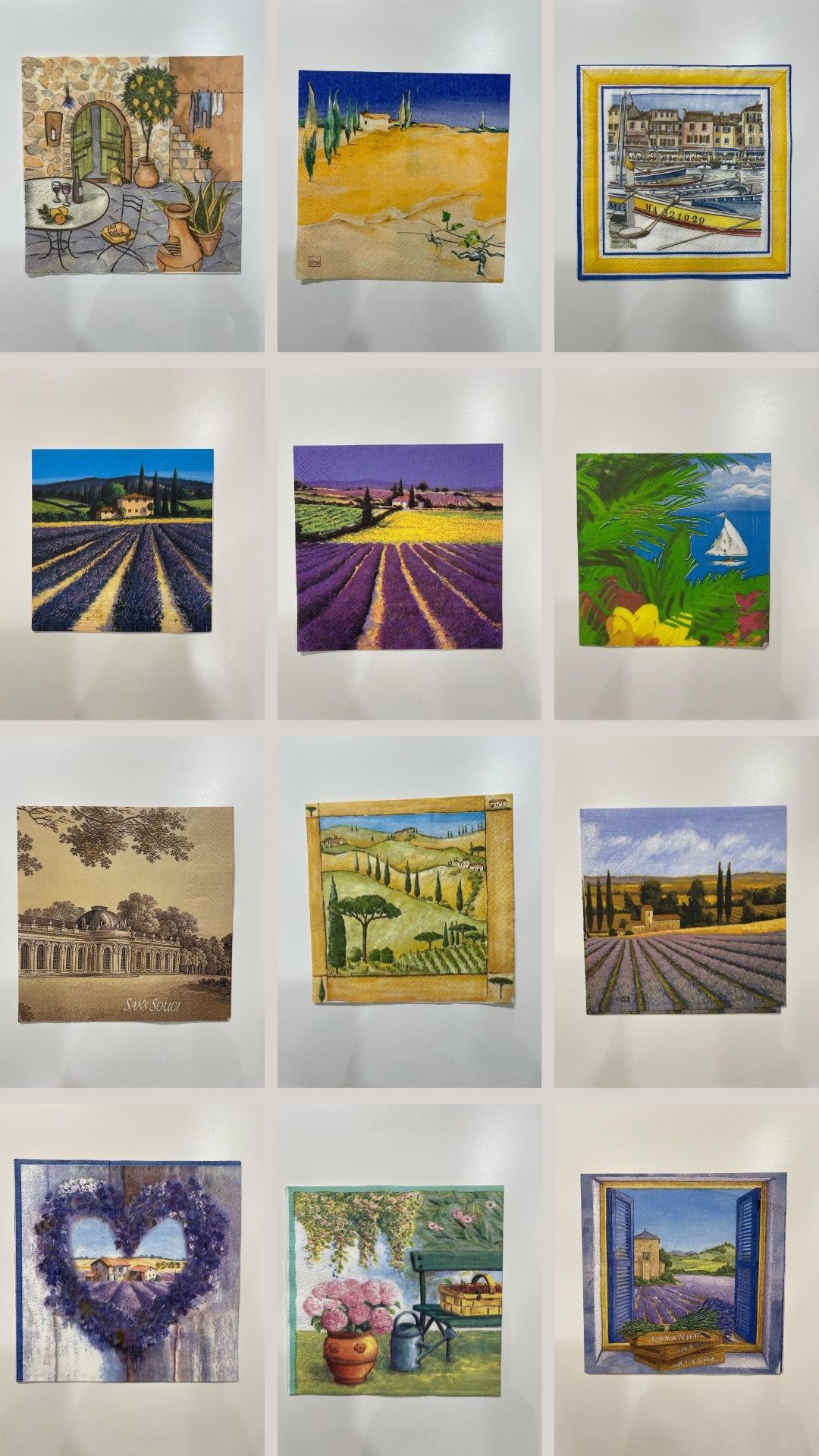 Tovaglioli decorativi ideali per il decoupage, impreziositi da immagini di paesaggi suggestivi e luoghi iconici: borghi antichi, campagne fiorite, città romantiche, scorci naturali e panorami senza tempo.