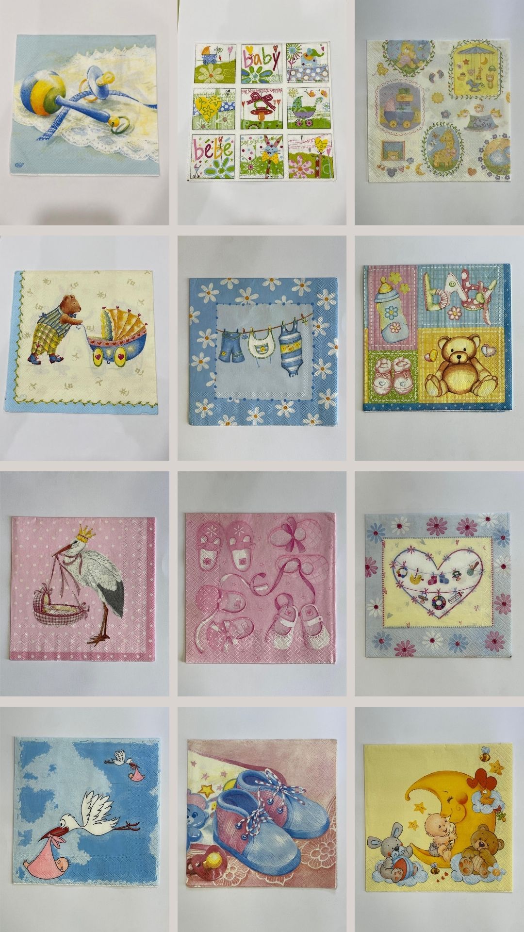 Tovaglioli decorativi ideali per il decoupage creativo, dedicati al tema nascita.