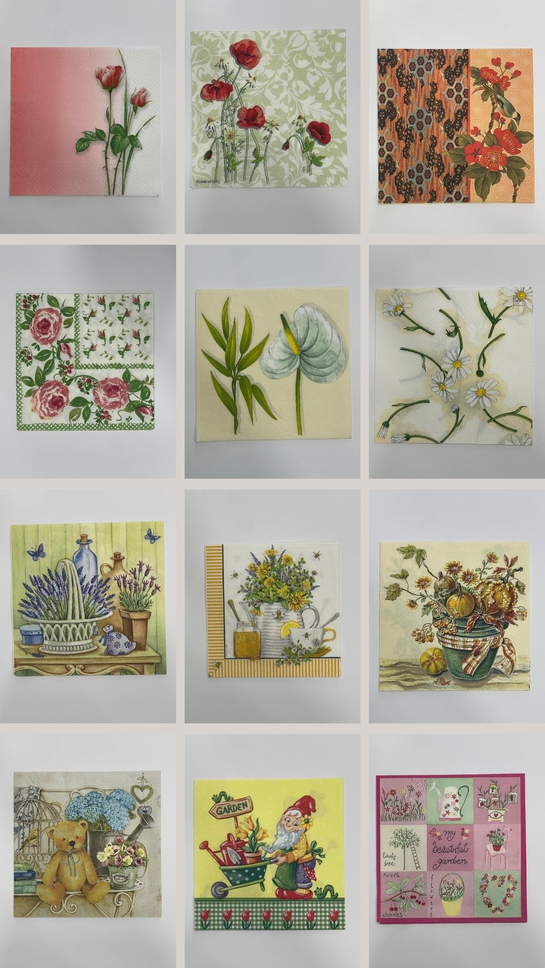 Set 24 pz tovaglioli per decoupage – Fiori, e Piante