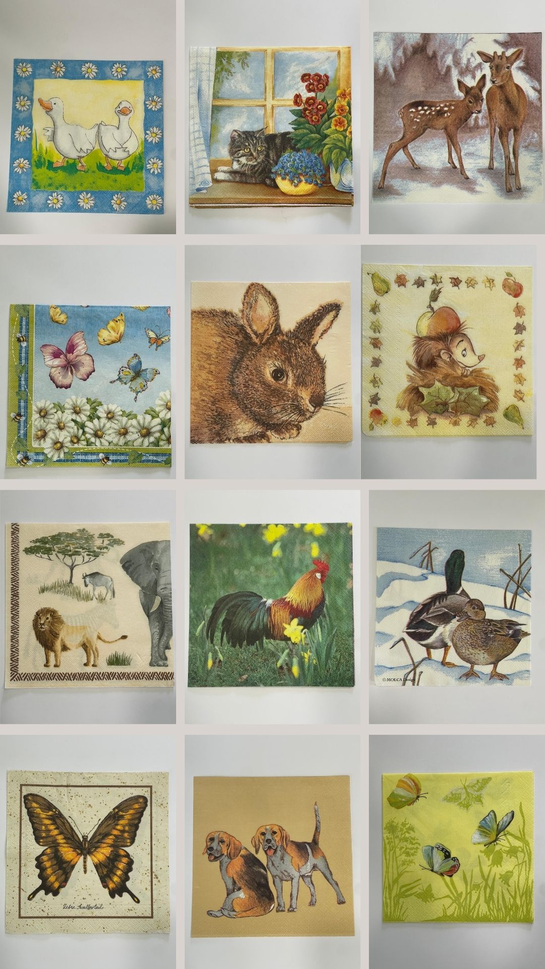 Set 24pz tovaglioli per decoupage – Tema Animali
