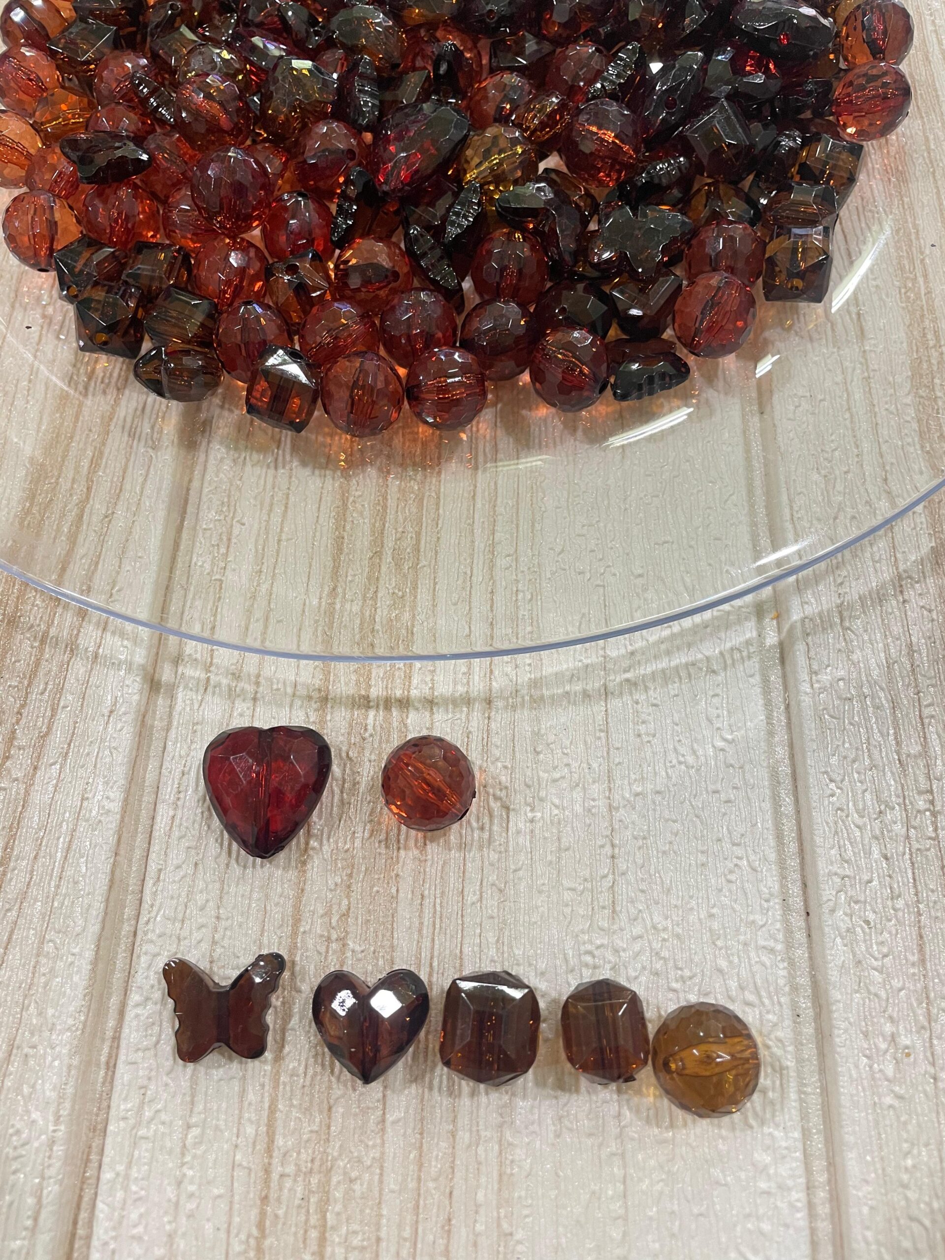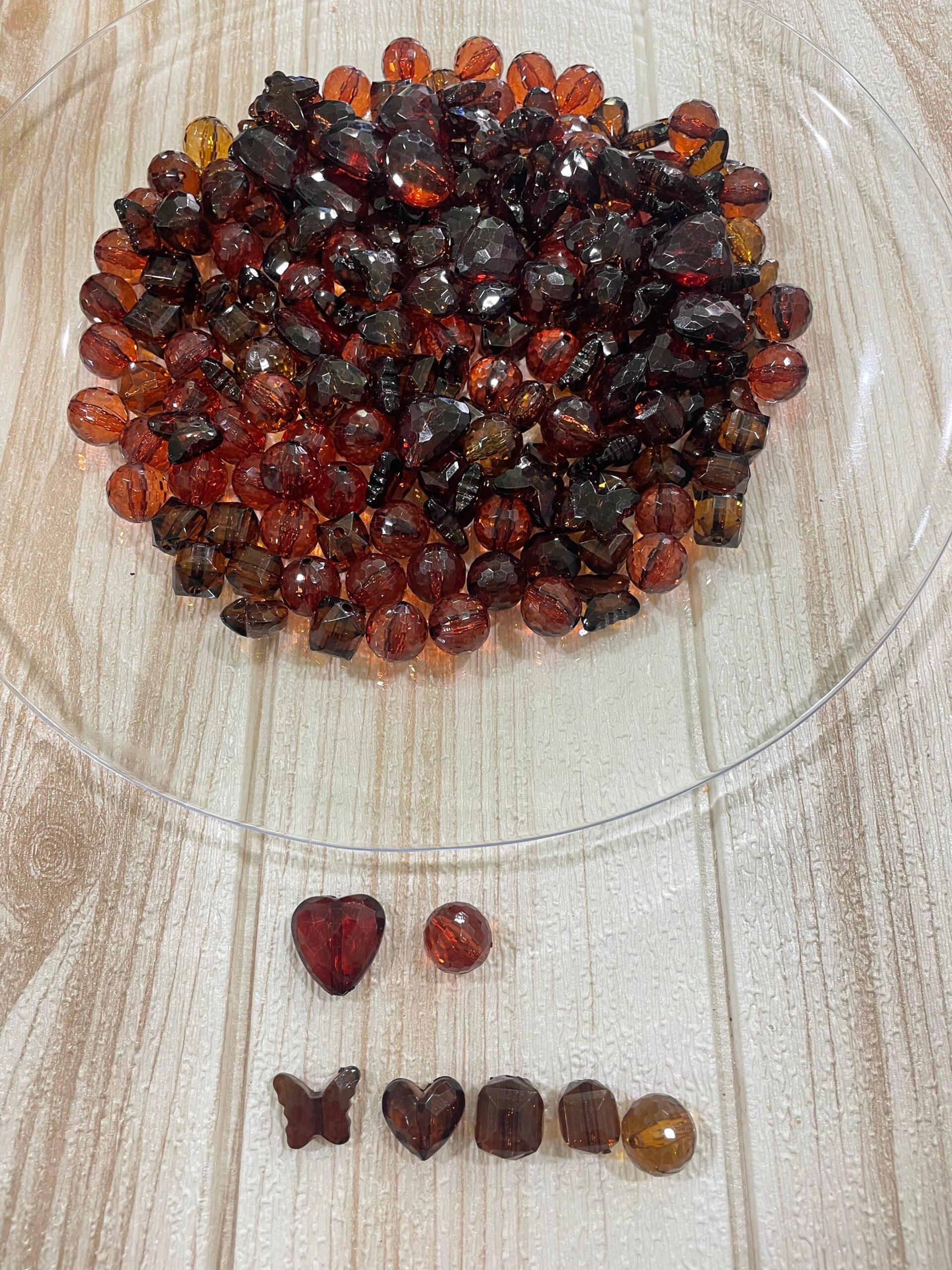 Mix di Perle Sfaccettate Trasparenti – Toni Ambra e Borgogna