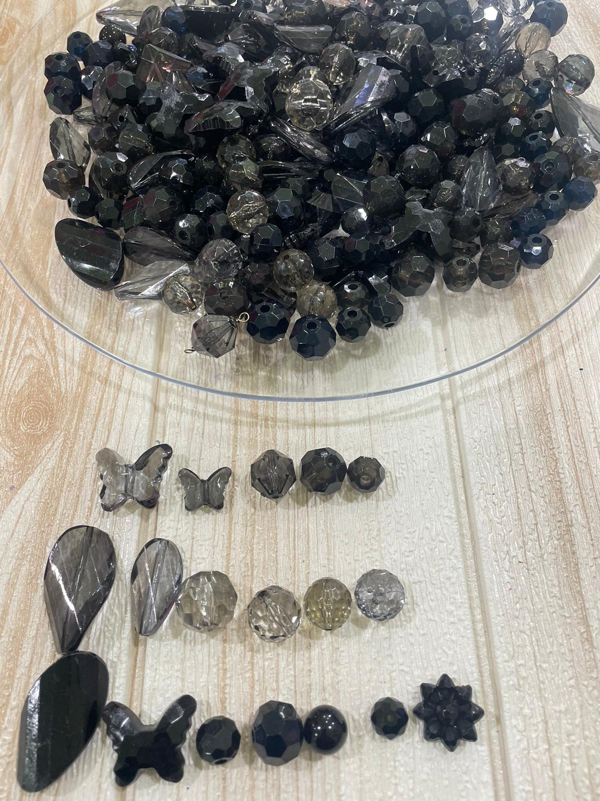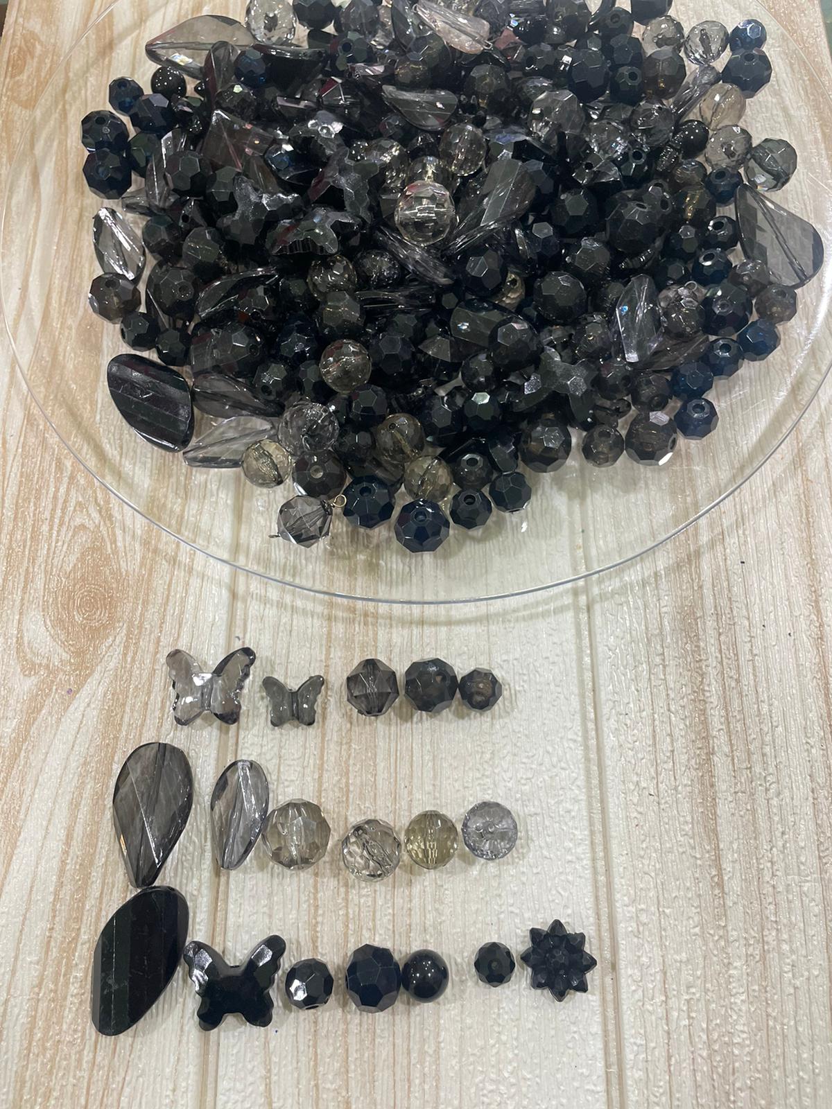 Mix di Perle Trasparenti Sfaccettate – Toni Nero e Fumé