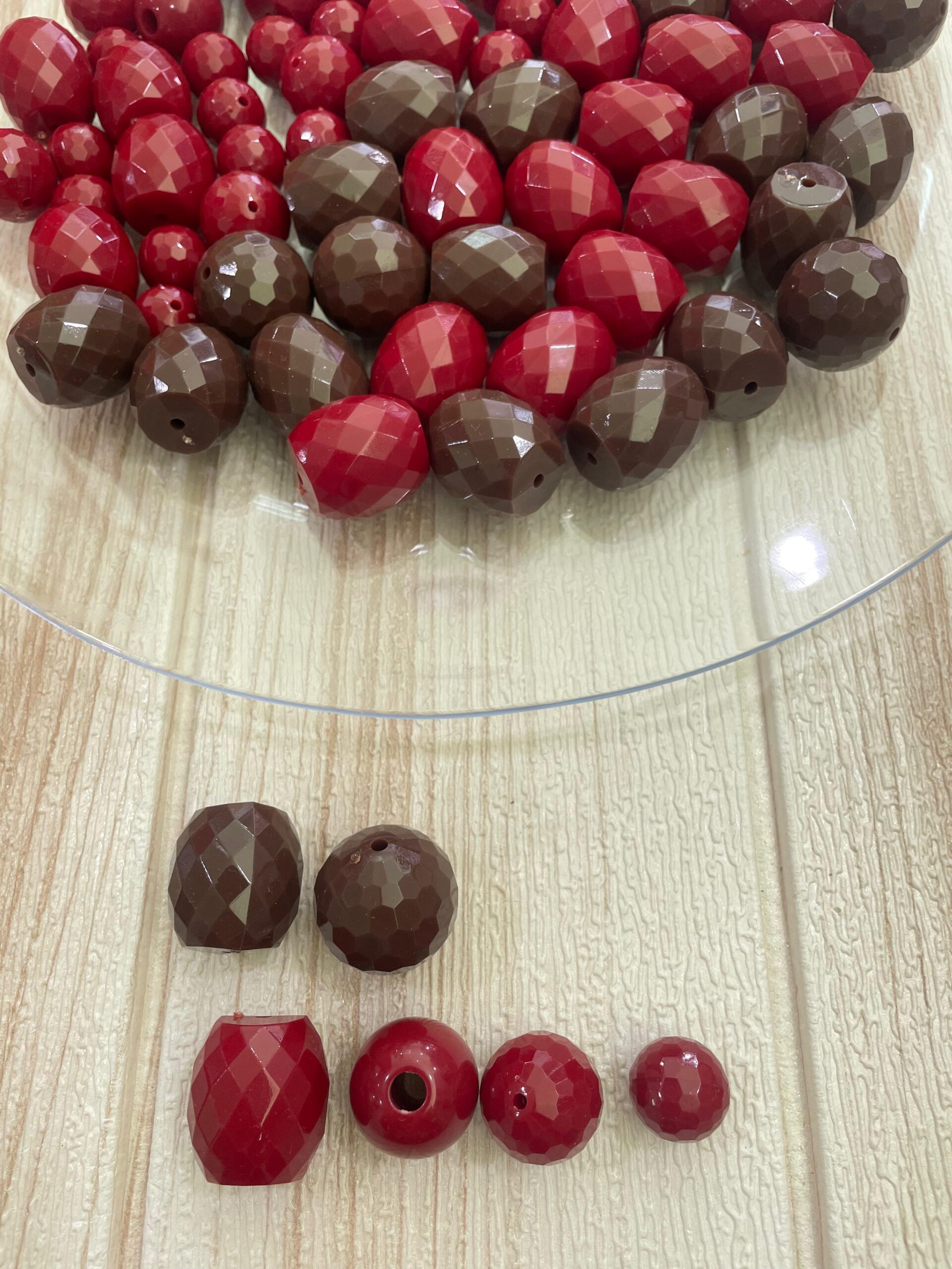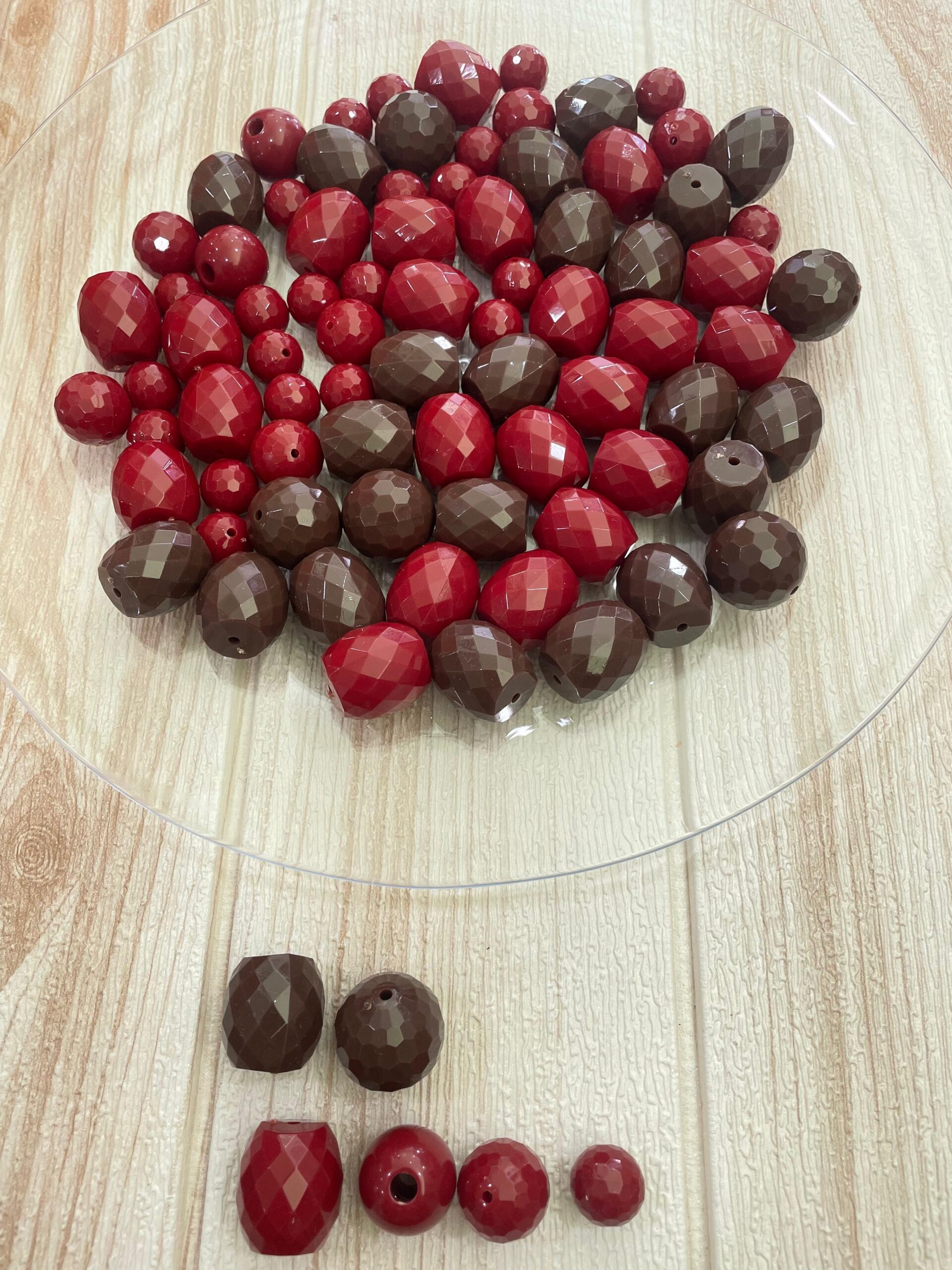 Elegante set assortito di perline decorative nelle calde tonalità del rosso e del marrone, perfette per creare gioielli dal carattere deciso e raffinato.
