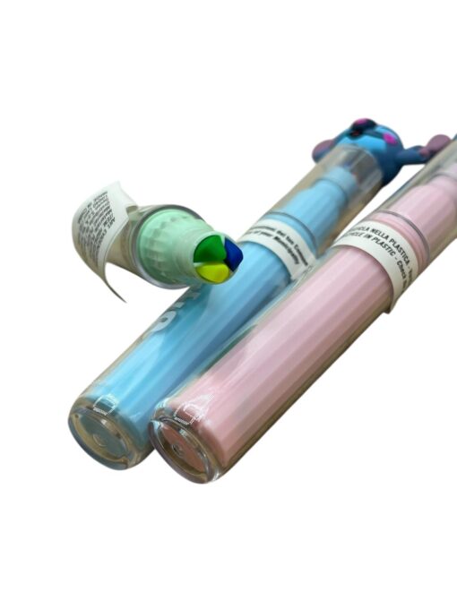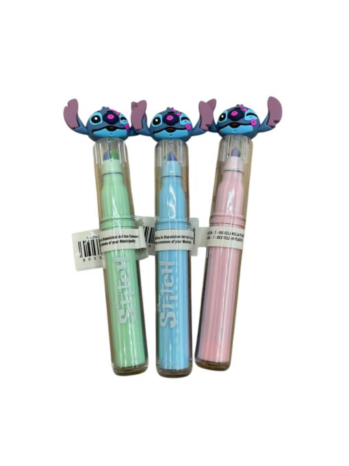 Un unico evidenziatore racchiude 3 colori brillanti – verde, blu e giallo – per evidenziare, decorare e rendere ogni pagina più vivace. Il fusto in colori pastello dona un look delicato e moderno, mentre il tappo con la testa di Stitch in morbida gomma lo rende ancora più simpatico e irresistibile da collezionare.