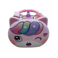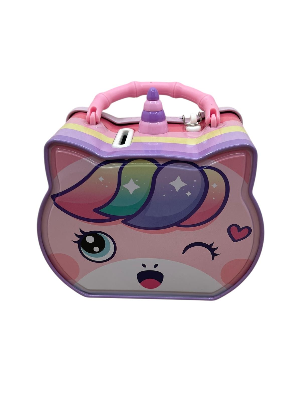 Il Salvadanaio Unicorno è realizzato in latta resistente e decorato con colori vivaci che richiamano il mondo incantato degli unicorni.
