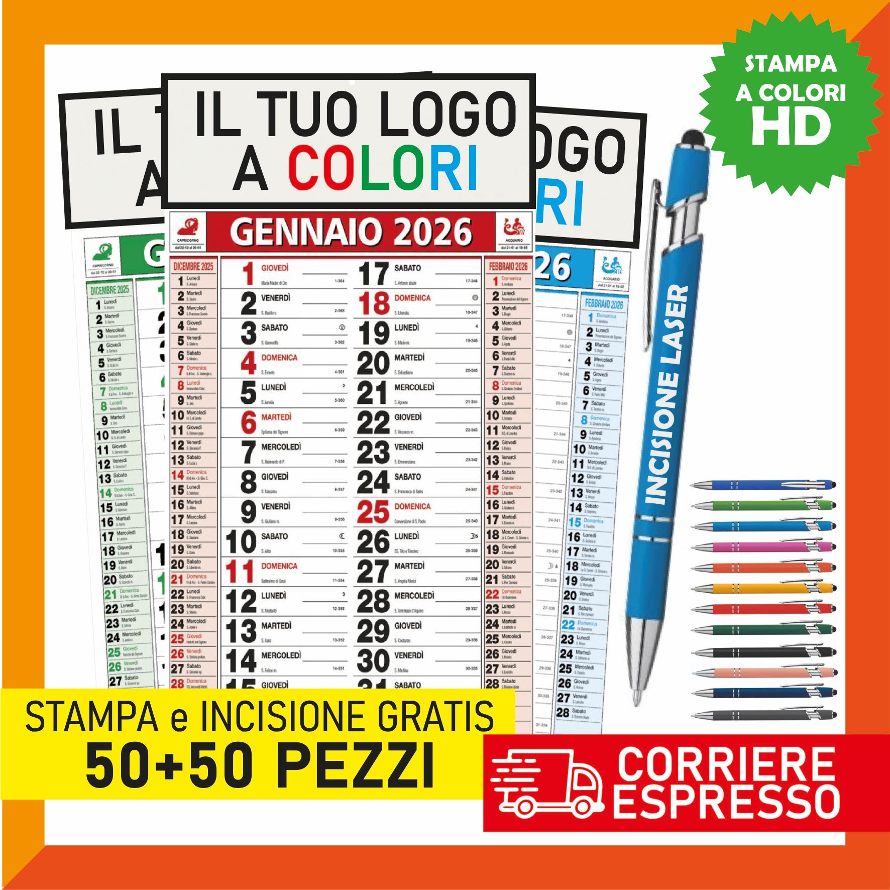 ✨ Promo Kit 2026 – 50 Calendari Olandesi 2026 + 50 Penne Incisione al Laser ✨