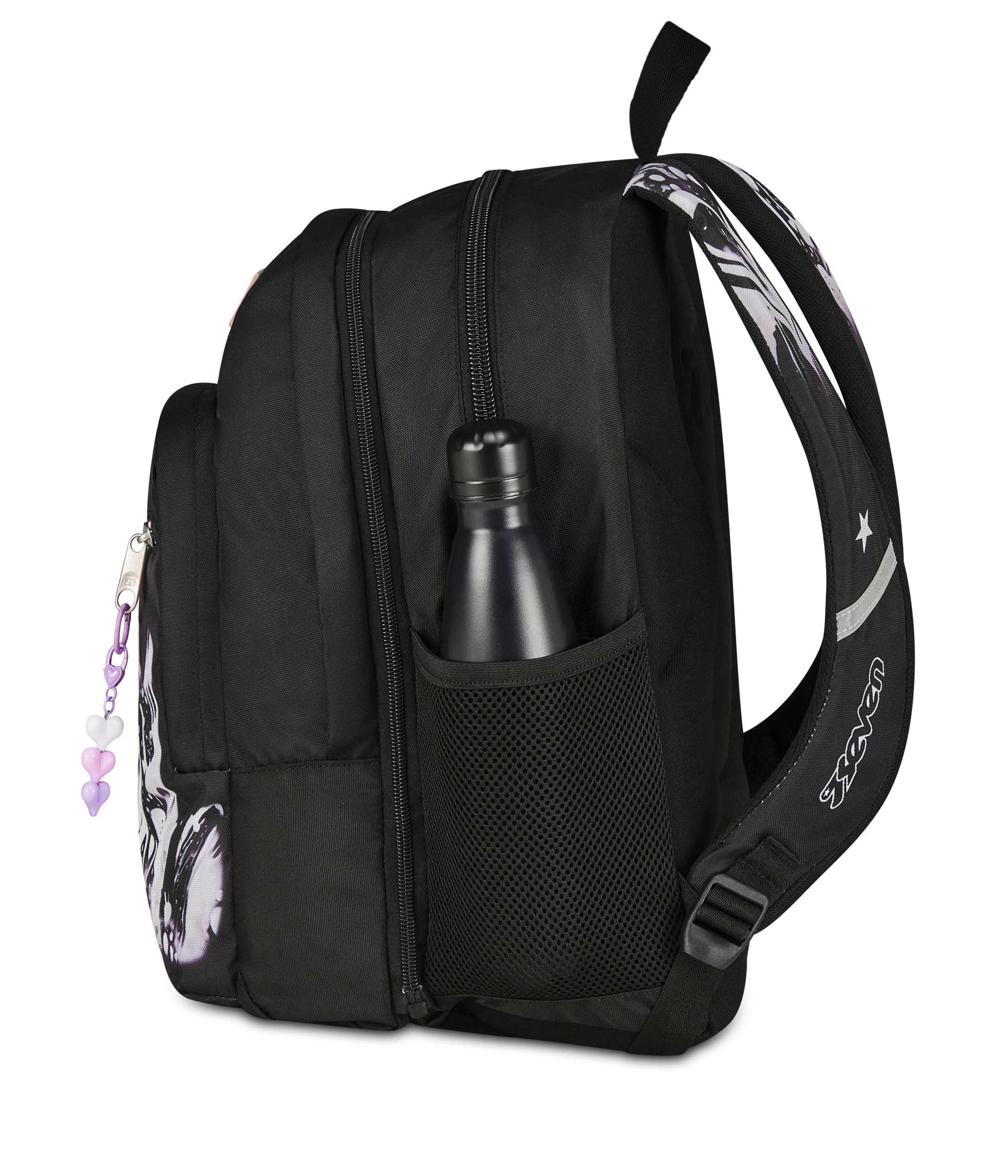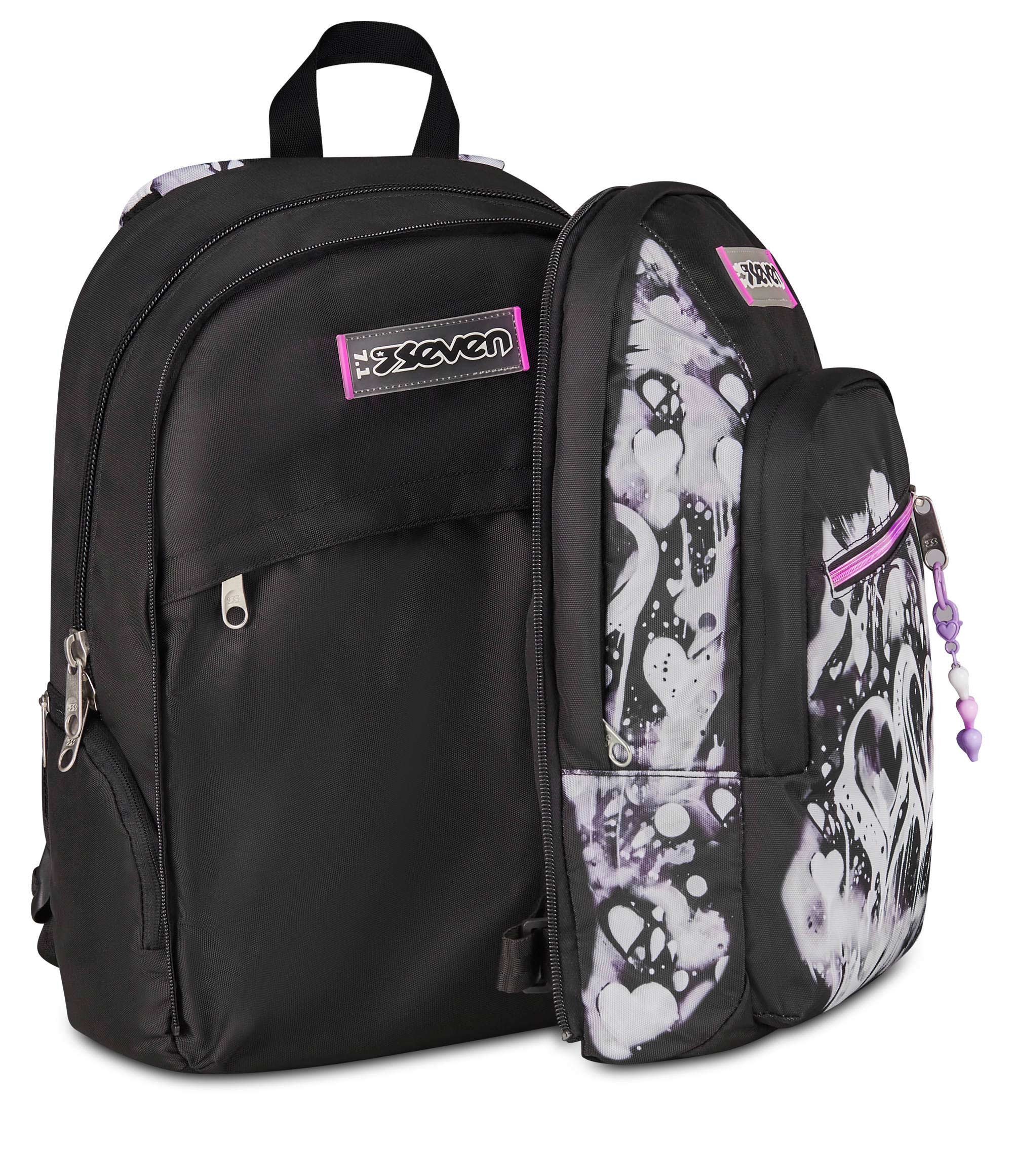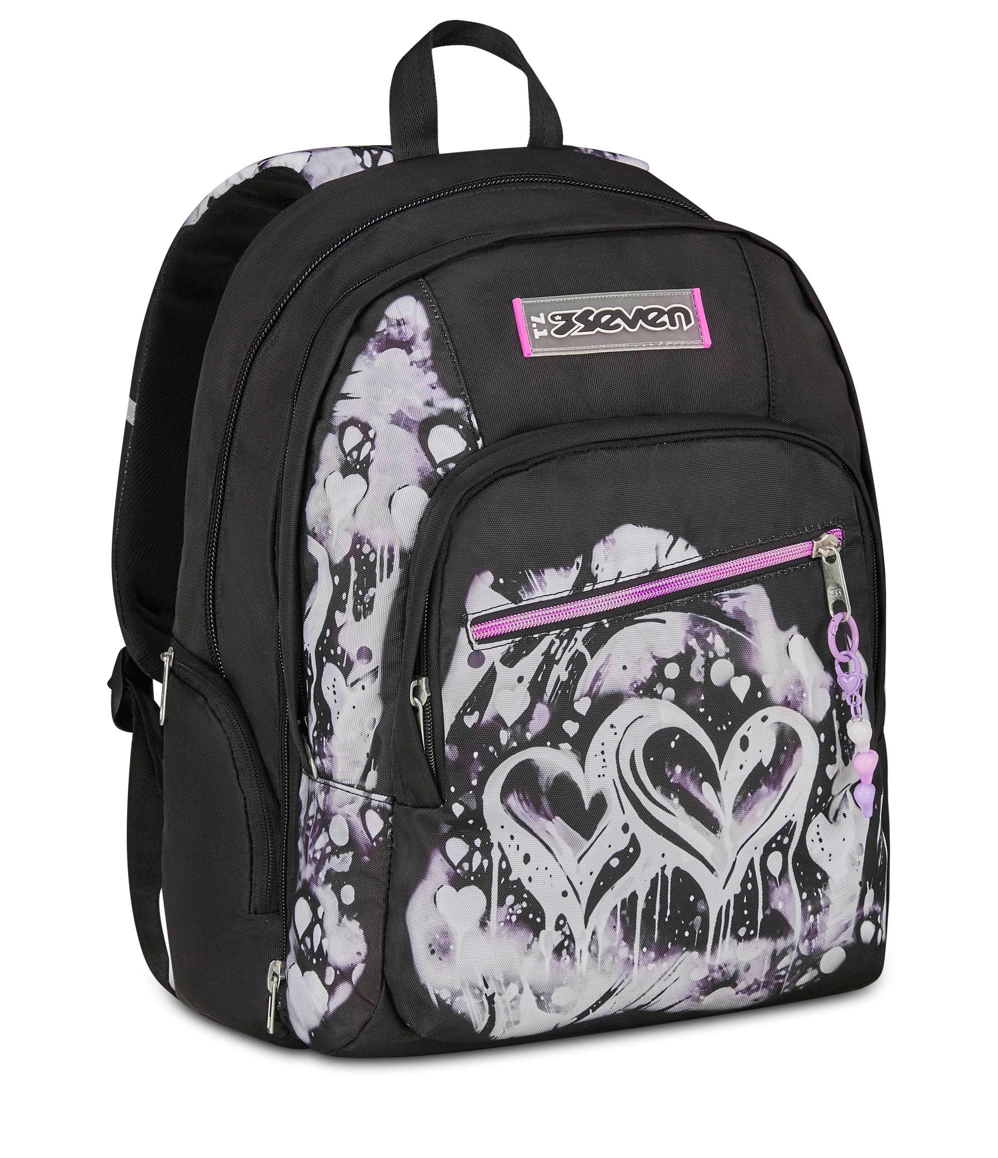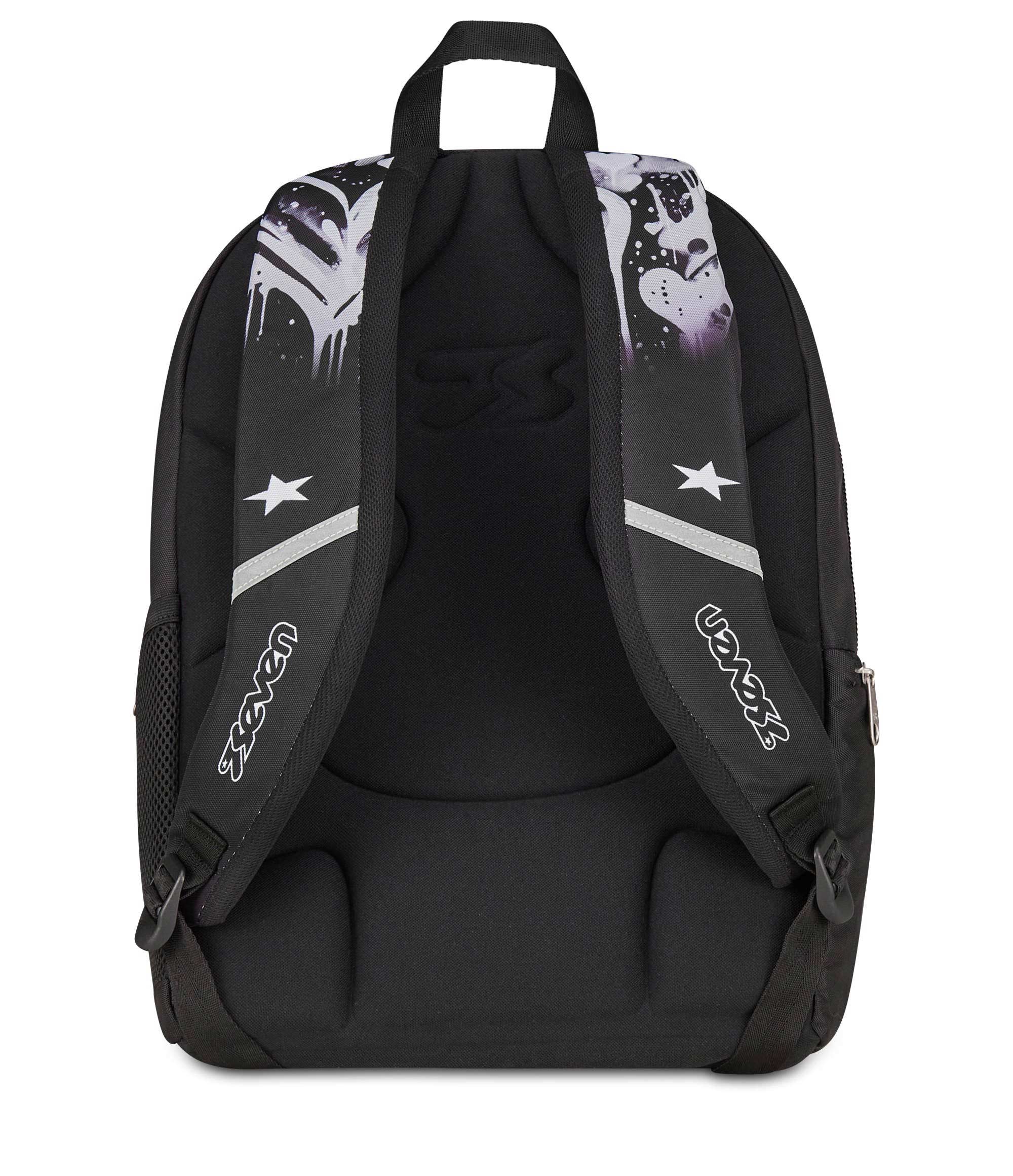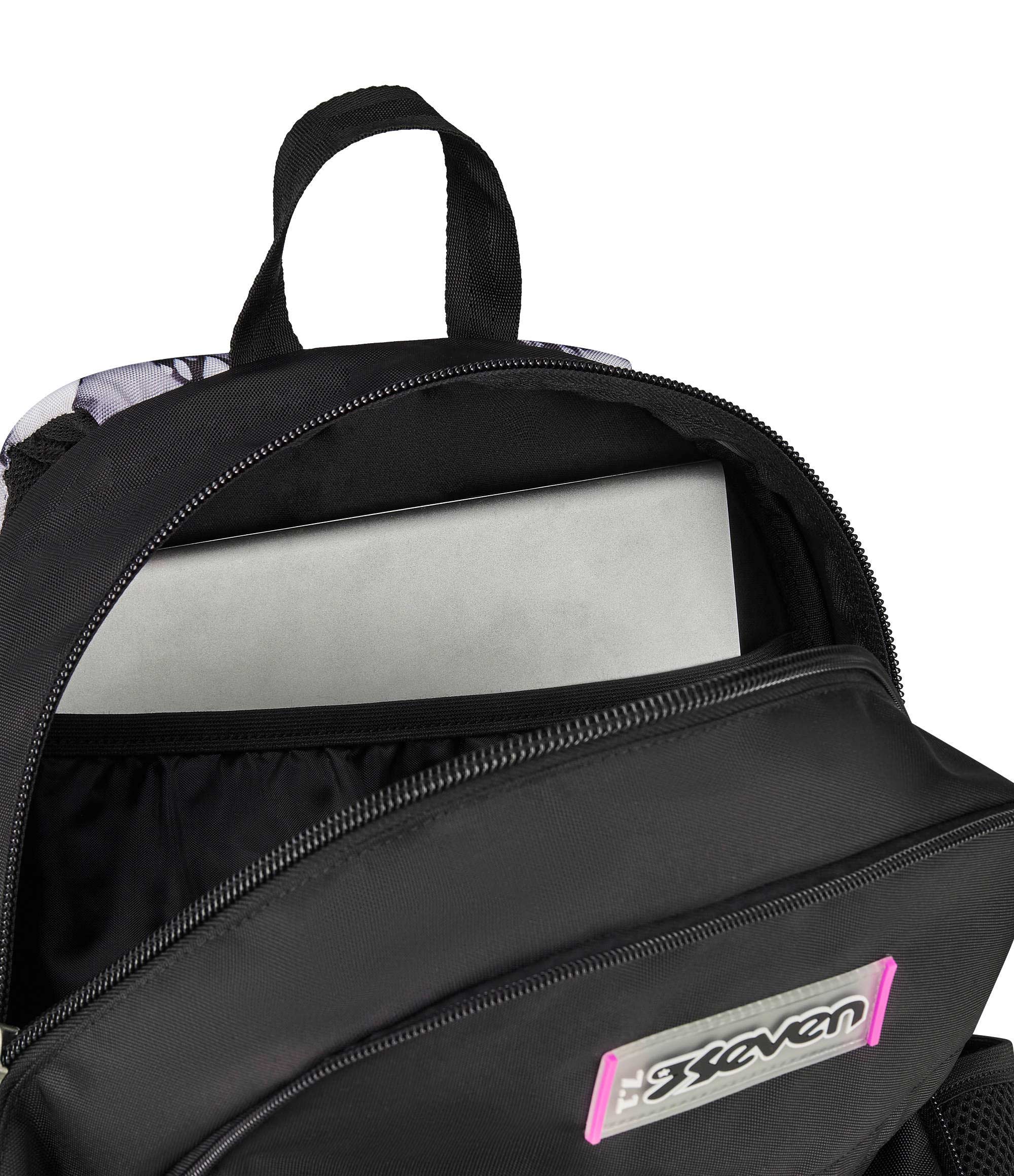 Davanti a te hai una giornata piena di impegni, tra scuola, allenamenti e un giro al parco nel tempo libero. Per affrontarla al meglio hai messo tutto ciò che ti serve nel capiente doppio scomparto del tuo nuovo Seven Dual Detach: lo zaino che, quando ne hai bisogno, diventa uno zainetto semplicemente sganciando lo scomparto anteriore tramite zip. Tutto è al proprio posto: libri e quaderni, tablet o PC nell’apposito scomparto interno, la borraccia nella tasca laterale e anche il cambio da indossare dopo l’allenamento. Telefono, auricolari e agenda trovano invece spazio nella tasca frontale con organizer. Uno zaino sempre comodo da indossare: spallacci e schienale sono confortevoli, mentre il fondo integrato mantiene il carico ben bilanciato.