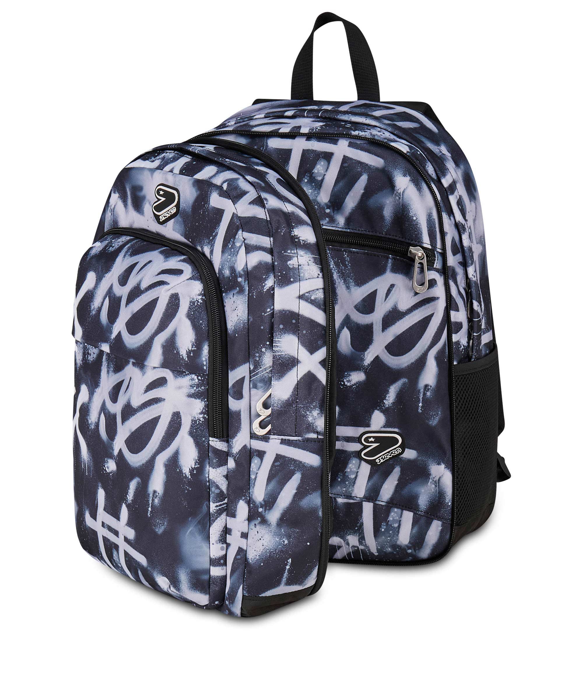 Con lo zaino Seven The Double Pro XXL Reversibile Detach sarà come avere 3 zaini in 1: uno zaino doppio scomparto con parte frontale in fantasia, uno zaino mono scomparto e uno zaino doppio scomparto con parte frontale tinta unita. Versatile, spazioso e dotato anche di EARPHONES WIRELESS, al suo interno puoi mettere tutto quello che ti serve per affrontare al massimo la tua giornata, compreso il tuo PC portatile / tablet. Comodo da indossare, è realizzato in tessuto 100% poliestere riciclato, certificato GRS.